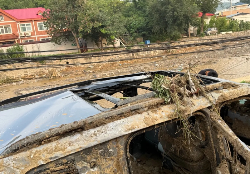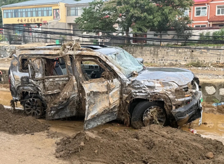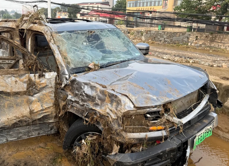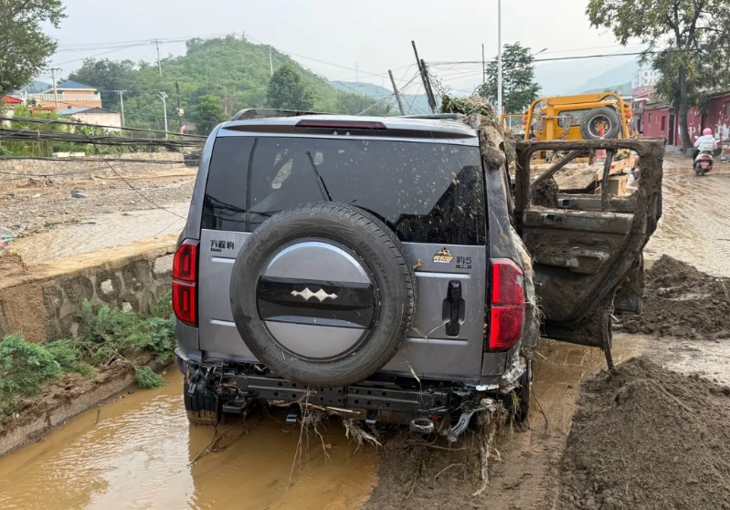 我已经到达现场了,豹5是真硬啊…… A柱没有变形,更离谱的是车子还通着电