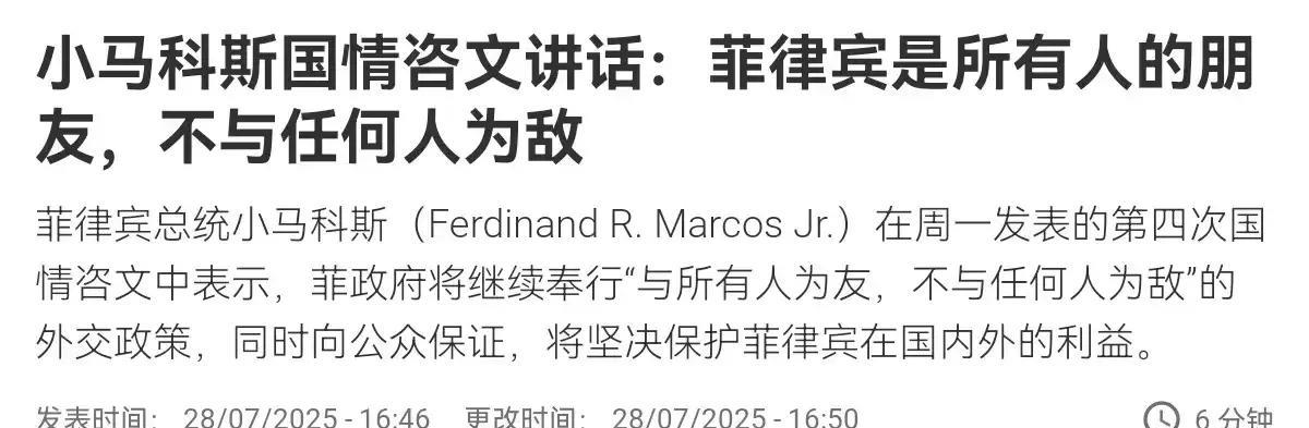 来自法国媒体7月29日消息说,菲律宾总统公开宣称,菲律宾不准备与任何人为敌,菲律宾是所有人的朋友。 菲律宾总统强调,面对新的威胁,菲律宾正在加强战备并提高防卫能力。而一旦有事,也有伙伴帮助菲律宾。 事实上,对于菲律宾来说,发出这样的声音,也是体现了菲律宾的态度。就是对我们发出强硬的声音,以示菲律宾有美国等伙伴可以帮忙。 但事实上,近年来美国增强在亚太地区的军事力量,把菲律宾作为自己的重要支点,也为其插手亚太事务奠定了基础。 而菲律宾甘当棋子,积极配合美国,与周边国家造成紧张局势,这就是菲律宾必须承受的结局。