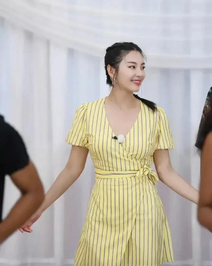 张雨绮穿黄条纹裙杀疯啦!深V设计藏不住凹凸感,脸蛋嫩得能反光,走路带风,这身材