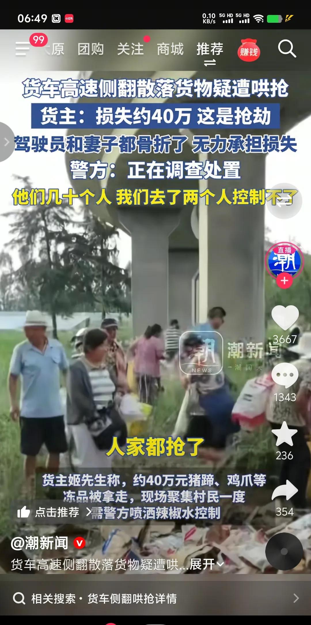 孔孟之乡,礼仪之邦,一个让人引以为傲的地方,如今却再也找不到两位圣人的影子。 货车侧翻,驾驶员和妻子都骨折,价值90万的冷冻食品散落一地,遇上此事已经够倒霉了,然而更让他们感到雪上加霜的是附近村民得知此事后,不但没有帮忙,反而遭到几十个人哄抢,约40万的猪蹄、鸡瓜子等冻品被拿走。以至于来了两个警察都控制不了场面,一度需要喷洒辣椒水控制。有人问村民“不是你的,为什么要抢?”村民竟给出了这样的歪理邪说,“别人都抢,为什么俺不能抢”。 如今当地派出所正调查处置,人们常说“穷山恶水出刁民”,问题是现在生活好了,法治社会了,和谐社会了,为什么还会出现如此原始野蛮行为?