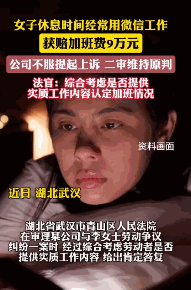 “大快人心!”7月27日报道湖北武汉,女子休息时间,经常收到公司领导的消息,要求她回复工作指令、修改方案等,女子离职后,要求公司支付12万元的加班费,但公司并不承认这属于加班,最终,李女士将公司诉至法院,法院:属于隐性加班,需支付加班费9万元! "休息时间一直让我工作,这不算加班算什么?不赔偿这个事情没完!"女子愤怒的说道,在当今快节奏的职场环境中,工作与生活的界限日益模糊,而湖北武汉李女士的遭遇则引发了社会对"隐性加班"现象的广泛关注。 李女士原本是武汉某公司的一名普通职员,自从入职以来,自己的休息时间就从未真正属于过自己,下班后、周末甚至节假日,公司领导总会通过各种方式联系要求处理工作事务。 李女士表示,这些工作指令包括回复客户信息、修改方案、参加线上会议等,虽然看似零散,却占用了她大量的个人时间,起初认为这是职场新人应该经历的阶段,也就默默接受了。 但随着时间的推移,这种"隐形加班"已经成为她生活的常态,让她身心俱疲,更让李女士难以接受的是,这些额外的工作时间从未获得过任何形式的补偿,甚至在年终评估时,这些额外的工作量也未被纳入考量,这让她感到自己的付出被完全忽视。 2023年李女士决定离职,在离职协商过程中,她向公司提出了12万元的加班费补偿要求,这一数字是根据她工作期间所有加班时间计算得出的,然而,公司方面对此表示强烈反对,公司相关负责人表示,李女士的工作时间已经包含在劳动合同约定的范围内,额外的工作沟通只是职场常态,不应被视为加班并支付报酬。 双方的谈判陷入僵局李女士感到自己的权益受到了严重侵害,愤怒的李女士决定将公司诉至法院,通过法律途径维护自己的合法权益,案件经过审理,法院认为虽然李女士的工作是通过微信等即时通讯工具在休息时间完成的,但实质上已经构成了加班行为。 经过对李女士工作时间的详细核算,法院最终判决公司向李女士支付9万元加班费,虽然这一金额低于李女士最初要求的12万元,但已经明确肯定了"隐性加班"的法律地位。 这一判决结果迅速在网络上引发了广泛讨论,一位网友留言道:"这个判决太及时了!现在很多公司都习惯在休息时间通过微信安排工作,却不愿为此支付报酬,这本质上是对劳动者权益的侵犯。" 另一位网友则指出:"判决明确了'隐性加班'的法律边界,这对规范职场秩序具有重要意义,希望这个案例能成为一个标杆,让更多企业尊重员工的休息权。" 李女士案件的胜诉不仅仅是个人的胜利,更是对整个职场生态的一次重要调整,它明确传递了一个信号:无论工作形式如何变化,劳动者的合法权益都应得到保障。 李女士表示虽然诉讼过程艰辛,但她对自己的决定从未后悔,这起案件无疑将成为中国劳动法实践中的一个重要参考,为未来类似案件的审理提供了明确指引。 对此你怎么看?欢迎大家在评论区留言讨论。