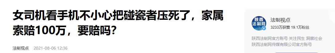 “大快人心!”沈阳女子等红灯时无聊玩手机,没有看到大妈躺在她车跟前碰瓷。绿灯后女子启动车辆,不慎撵了过去,结果导致大妈死亡。家属一纸诉状将女子告上法庭,并索赔100万,法院判决亮了! “杀人偿命!人是你撞死的,你就得赔!”法庭上一男子怒吼着。 事情发生在2021年7月沈阳,女子下班时正是下班高峰期。在事发当天,说来这个女子也是倒霉,下班的一路上都是红灯。到了下一个路口,女子眼看着轮到自己过线时绿灯刚好变成红灯。 女子着急也没用,于是就停下车乖乖等灯,看着还要等八十多秒的红灯,女子想干等着也很无聊,就拿起手机看了一会儿。突然身后传来了车鸣,女子抬头一看已经是绿灯了,就赶紧起步。 谁知道刚刚起步就感觉车子前面好像有阻力,像是有什么东西挡住了前轮。于是下车查看,竟然看见了一个大妈躺在车子前面,已经血肉模糊。女子顿时懵了,怎么会有人呢?明明刚刚起步的时候前面没人啊?这大妈是哪来的? 但是现场的情况等不及女子多思考,下班高峰期好多人看到这个情况都围了上来。有人催促着女子赶紧叫救护车、报警、通知大妈的家属,一时场面热闹异常,纷纷出主意。也有人认出来了大妈,给女子说这个大妈就是专门碰瓷的。 女子一时大脑没有反应过来整个人都傻了不知道该怎么办,有好心人看到这个情况赶紧先报了警、叫了救护车。很快救护车就来将大妈拉走,警察也过来进行调查。 可是大妈到了医院之后还是不幸离世,大妈的儿子知道之后二话不说将女子告上了法庭,要求女子赔偿一百万。但是经过法院的调查,最终驳回了男子的诉求,表示女子不用承担任何法律责任。 原来,大妈是在近几年来到这座城市和儿子一起生活。一天大妈在外面溜达的时候看见了一位大哥碰瓷的全过程,最后车主私了给了大哥几千块钱。大妈见到之后也开始有样学样的模仿大哥的碰瓷手法,刚开始没有成功。但是大妈经过了半年的摸索之后,第一次尝到了甜头。 随后大妈就开始专门碰瓷,没事就在街上瞎溜达找目标。直到事发当天看到女子开的车挺好,就蹭着女子的车灯躺了下去。没想到女子根本没看见她,白白送了性命。 事情被发到网上之后,网友们表示,法院的判决简直就是大快人心!大妈明知道碰瓷是危险行为还执意为之,完全是自作自受,本来就应该大妈自己承担后果。女子虽然在车上玩手机有疏忽,但是并不应该负主要责任,若让女子承担责任,反而会让碰瓷的人越来越嚣张。支持法官的判决! 希望在这件事情之后,碰瓷事件可以有所减少,大家也尽量在开车时专心一点,不玩手机。 对于这件事情,你们怎么看?