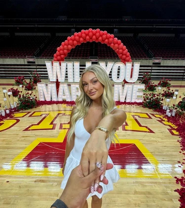 魔法师求婚成功!哈利伯顿好事将近。 步行者后卫今年大出风头的哈利伯顿穿着保护靴做出了单膝跪地的求婚动作完美求婚成功。哈利伯顿同爱人是大学同学可以说是青梅竹马两小无猜呀! 值得一提的是哈利伯顿的求婚的场地也很特别,是在两人的母校爱荷华州立大学的篮球馆。#哈利伯顿# #雄鹿小波特# #哈利伯顿合同# #哈里伯顿# #哈利伯顿神发挥# #哈利伯顿传奇# #哈利伯顿封神战# #哈利伯顿魔咒#