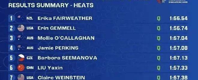 新加坡游泳世锦赛第三日预赛:3项顺利过关,男800自团灭! 1、女子200米自由