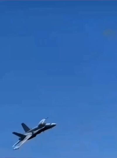 27日,在西班牙希洪航展上,一架进行飞行表演的F18战斗机,突然做出超机动动作,迎面看起来,战机几乎拍到海滩上的观众群里,甚是惊险。但实际上,这是因为飞行员发现了航线上有一群飞鸟,为了避开鸟群而进行了紧急规避,几乎失速,好在飞行员技术过硬,避免了出现严重事故。从侧后方山坡上,可以清晰地看到战机在电光石火间避开了鸟群。
