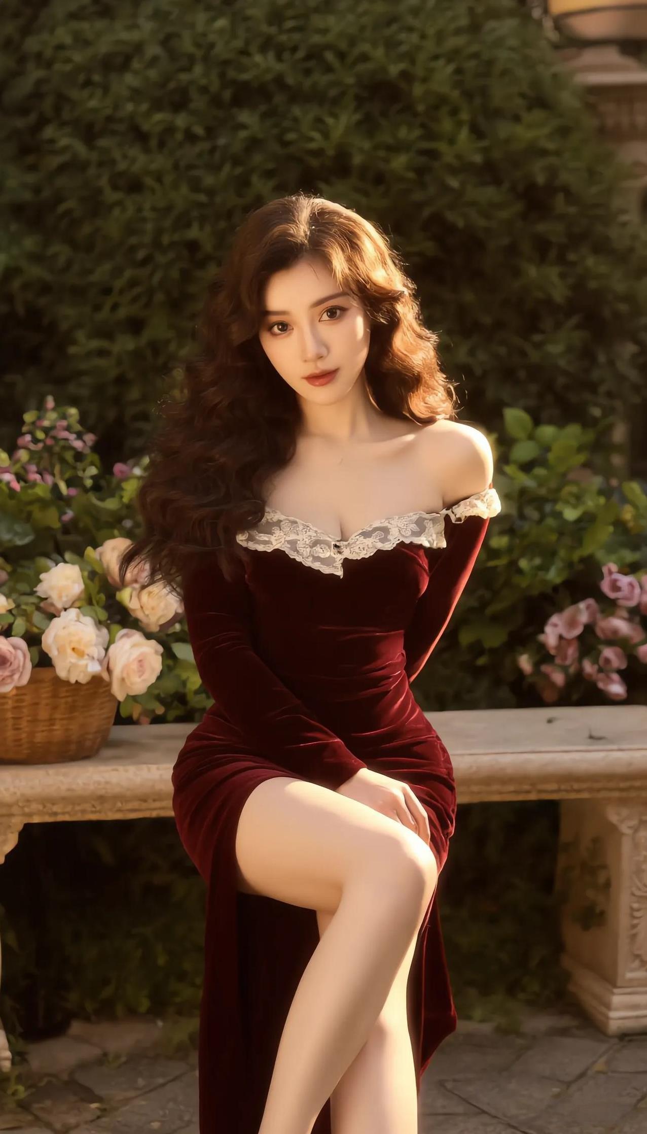 复古红裙,优雅气质,花园中的美丽瞬间。 #分享随手拍的美照# #发现生活里最美的瞬间# #心怡壁纸分享# #随拍# #手机随拍黄昏#