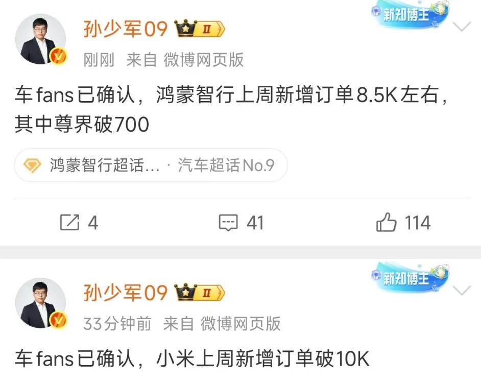 鸿蒙智行得加把劲了,整个鸿蒙智行一周的量还不如小米2台车的量,这个确实应证了余承东话,我们质量好、智驾好,销量却不如人家,甚至有的还不如人家的零头。但是,也应该好好总结总结了,除了营销之外,为什么销量不如人家?