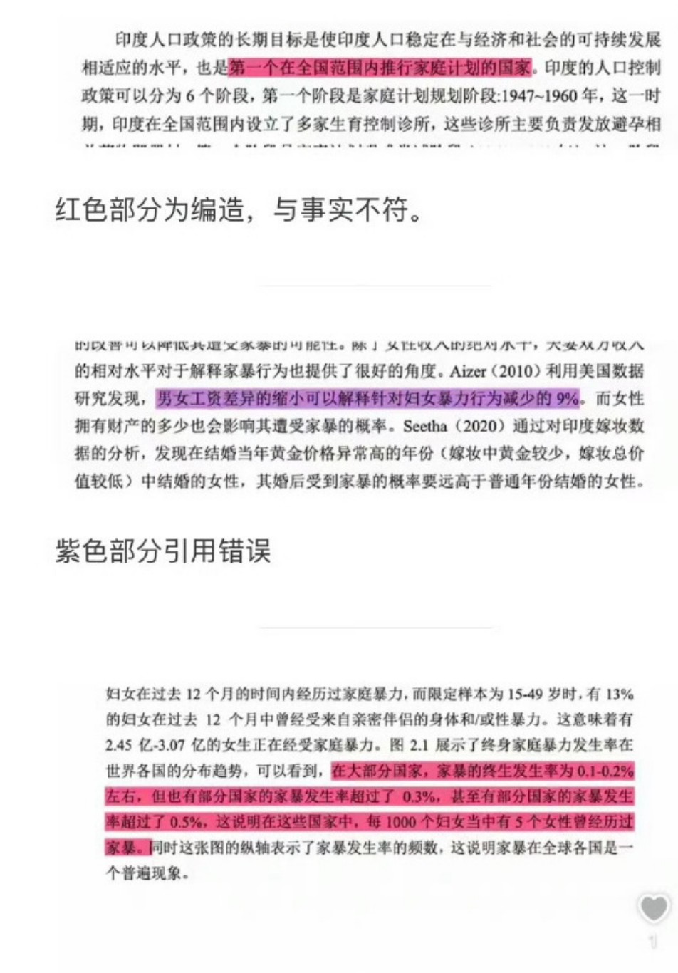武汉大学诬告男同学xsr的杨某媛,论文居然照搬湘潭大学何晖和王凌林在2022年《现代世界警察》期刊发表的论文《印度反家庭暴力的实践与成效》,完全没有规范引用! 说明白点,这就是典型的剽窃和抄袭。 除此以外,杨小姐的论文中被指出还有众多的虚假数据、编造事实、语法错误、错别字、错误引用等极端低级错误。说她是学术不端,就已经是很客气的了。 更神奇的是,武汉大学那么多的专家学者,居然完全让她通过了答辩。武汉大学的学术氛围如何,大家可以掂量掂量了。