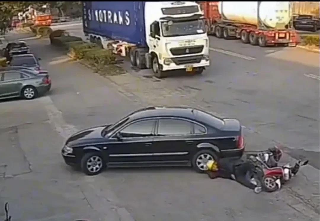 #分享城市新鲜事#现在的人碰瓷碰的明目张胆,这个骑电动车的男人很远都看到黑色私家