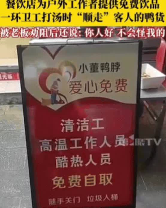 “太坏了!”河南信阳,男子开餐馆,为户外工作者提供免费饮品,不料,环卫工打汤时,竟然“顺走”了客人的鸭货,被老板劝阻后,环卫工还理直气壮的说:你人好,不会怪我的!说完就离开了!随后老板的做法大快人心! 这样的人品,无论在何处工作,都是危险分子,谁用工谁倒霉! 把别人的善意当成了理所应当的了,当你有一天没有提供绿豆汤,她可能还会责怪你,这就是斗米恩,升米疯仇! 如果真正和社会底层打过交道,就会发现这种情况太正常并不意外。真正的慈善,不是去“送”,而是能提供一个可以让他们自己努力去“得”的平台和机会。 一粒老鼠屎坏了一锅粥。我以最大的恶意觉得,她是不是会顺走公司的保洁用具? 大家对此行为有何看法?