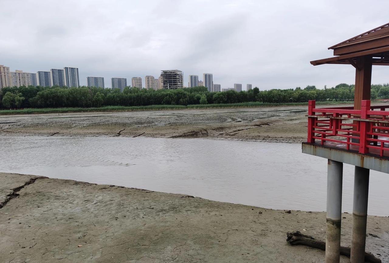 为了应对可能到来的洪水,整个河道提前把水都已经放空了,整个河床都已经裸露出来了,