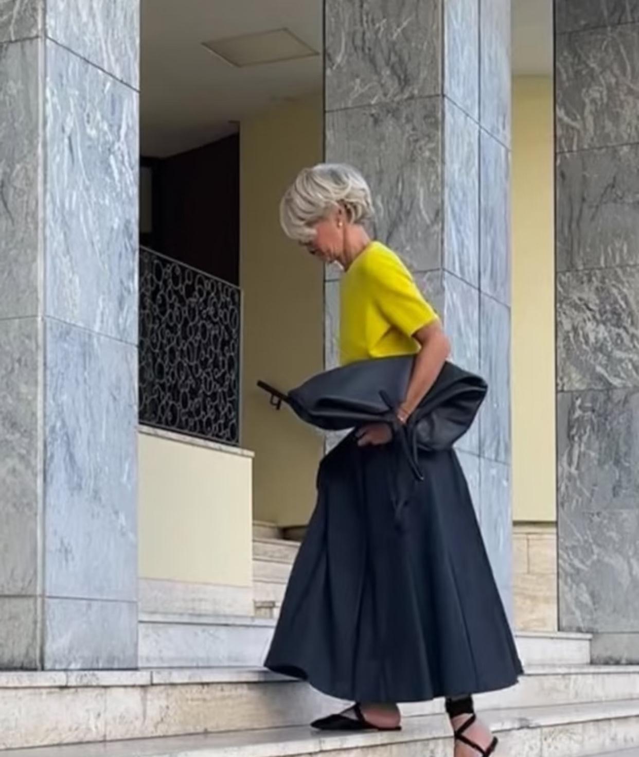 这老太太衣品真好,金色的发型也好看。 穿衣好看主要还得是瘦啊。 闺蜜说现在她已经
