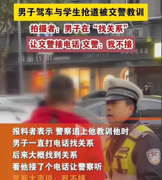 “这个交警太霸气了!”四川南充,学生放学过斑马线,男子驾车不仅没退让,还加速和学生抢路!交警看到后气愤不已,追上狠狠“教训”男子!可男子却不以为然,掏出手机找“关系”,找到后命令交警接电话!不料,交警霸气回应:我不接! 在四川南充,放学那会儿,孩子们正兴高采烈地走在斑马线上,准备回家。可就在这时,一辆黑色轿车猛地冲了过来,差点儿就撞上了孩子们,幸好司机在最后关头转了方向避开了。这一幕,刚好被路边的交警叔叔看在眼里,他气呼呼地追上去,拦下了那辆车。 交警叔叔对着司机喊道:“你这人也太过分了吧!孩子们正在过马路呢,你怎么能加速呢?”司机呢,却是一副满不在乎的样子,说:“又没真的撞到,你这么激动干嘛?”这话一出,交警叔叔的火气更大了。他尽量控制自己的情绪,告诉司机这样做有多危险,多不讲理。可司机完全没当回事儿,反而拿起手机开始打电话,好像是要找什么人帮忙施压。电话通了后,司机还想让交警接电话。交警叔叔一看这架势,直接拒绝:“我才不接呢!”这个动作让旁边看的人鼓起掌来,而且很快就在网上传开了。网友们都给交警竖大拇指,说他“真厉害”“讲规矩”,同时还批评那个司机不守规矩,想靠关系躲责任。 最后,交警按照法律给了司机处罚,这事儿也让大家开始好好琢磨交通文明和遵守规则的重要性了。