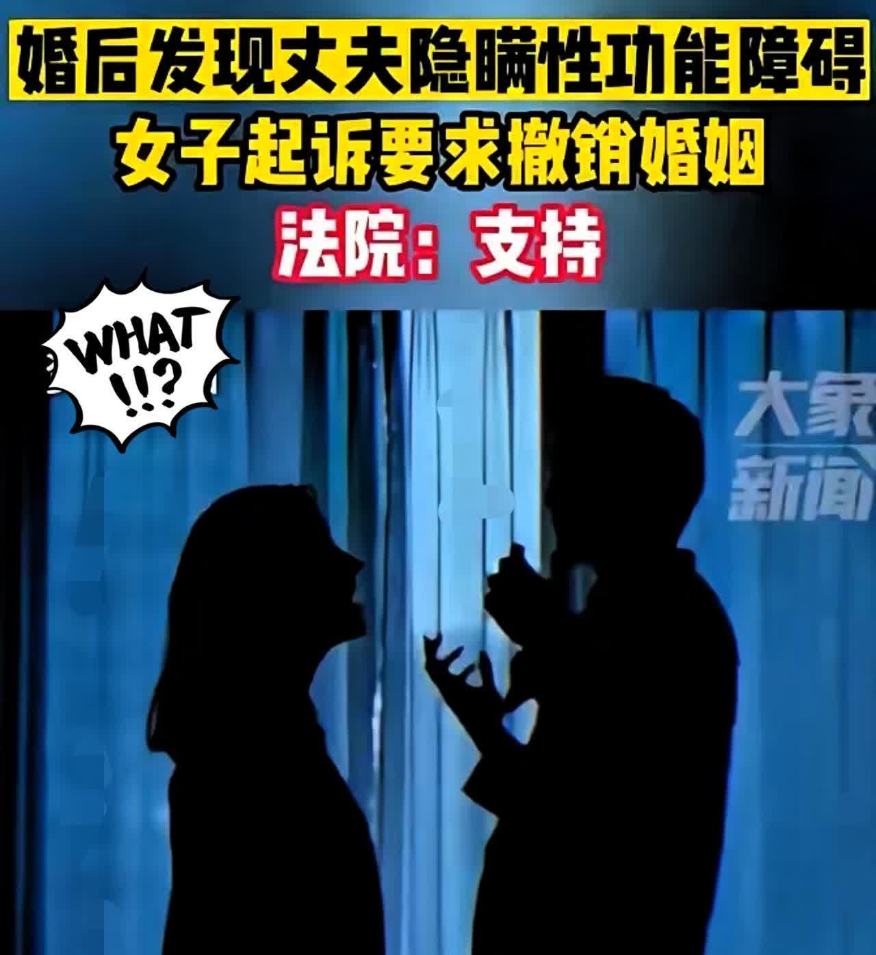 悲哀啊!江苏南通,新婚之夜丈夫拒绝和女子同房,女子以为丈夫太累便没在意,不料,后来丈夫也总是以各种理由拒绝进行夫妻生活, 长此以往女子发觉事有蹊跷,方知丈夫患严重的性功能障碍,女子觉得被骗怒不可遏,将丈夫告上法院,请求撤销婚姻,法院这样判! 悲哀啊!江苏南通这对夫妻的事,听完真让人堵得慌。新婚夜丈夫拒绝同房,黄女士以为他太累没在意,可往后日子里,丈夫总找各种理由推脱夫妻生活。直到她逼问才知,丈夫早就患有严重的性功能障碍,婚前愣是一句没提! 这对校园情侣从大学走到婚姻,黄女士一直觉得男友绅士有礼,没成想这份“懂分寸”背后藏着隐瞒。她幻想的小家和宝宝成了泡影,还在自我怀疑中憋了一肚子委屈。丈夫明知自己有问题,却为了留住婚姻选择撒谎,这哪是爱,分明是把对方的信任当赌注。 法院最终支持了撤销婚姻的请求,但多年感情被谎言戳破的痛,哪是一句判决能抹平的?婚姻里最忌隐瞒,尤其是这种关乎终身幸福的事。婚前坦诚和婚检真不是小事,你们说,这种藏着掖着的婚姻,能走得长远吗?