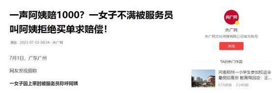 “太离谱!”广东,一50岁女子到饭店吃饭,20多岁服务员上菜时,随口喊了女子两声