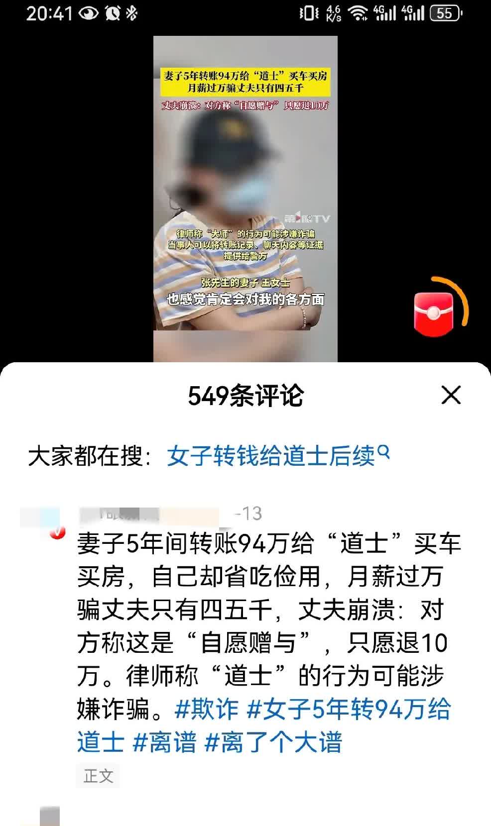 这就是大家为什么都选择不结婚原因吧? 有女子5年间转94万养道士,骗老公自己月