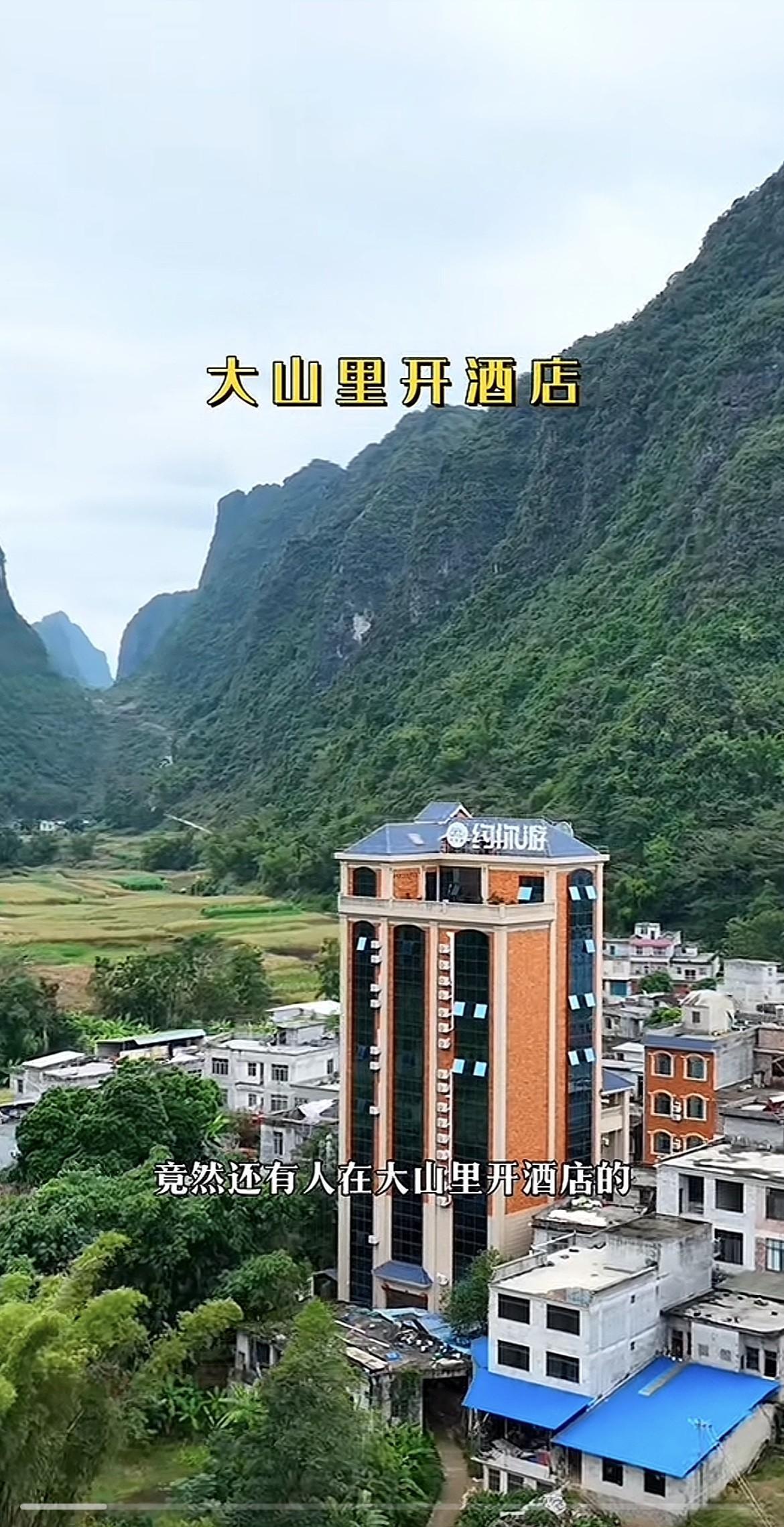 广西大山里的酒店,装修豪华每个客房都装有空调,与周边的自建房形成鲜明对比,这周边又没有集市交通也不方便,会有游客来这里住吗?