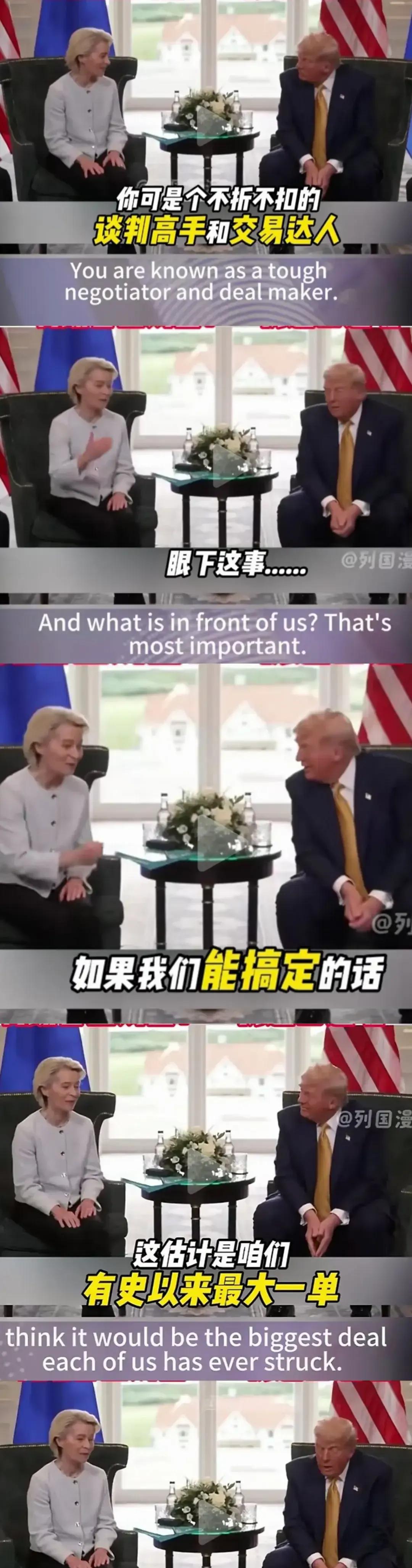 “我一(只)眼就看出,这根本不是什么协议,不是特朗普与冯德莱恩达成的协议,而是特朗普把冯德莱恩当早餐吃了。”这是当冯德莱恩盛赞特朗普是谈判高手和交易达人,与她达成了“有史以来最大的一单”交易后,匈牙利总理欧尔班做出的回应。这个回应无比真实地描绘了美国和欧盟之间达成的协议的实质,即冯德莱恩出卖了欧盟,出色地完成了特朗普的美国任务。 只是,冯德莱恩这样一份“早餐”,对特朗普来说是不是可口的美味就另当别论啦。