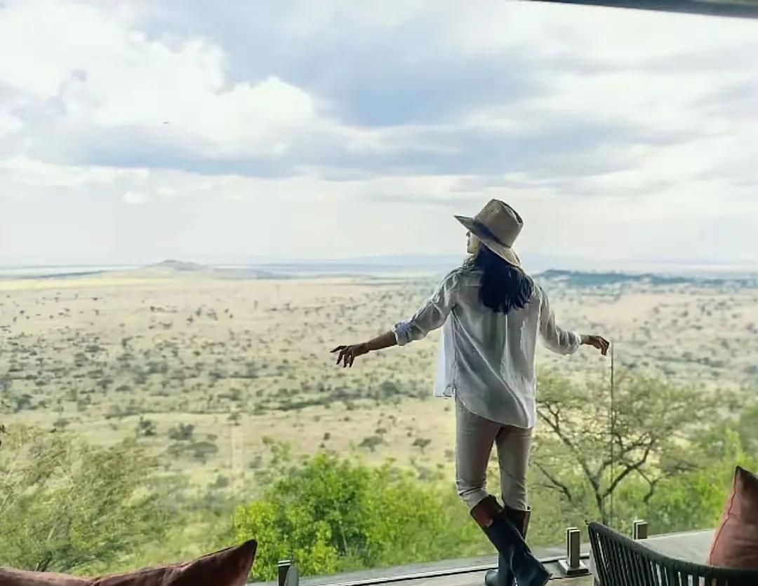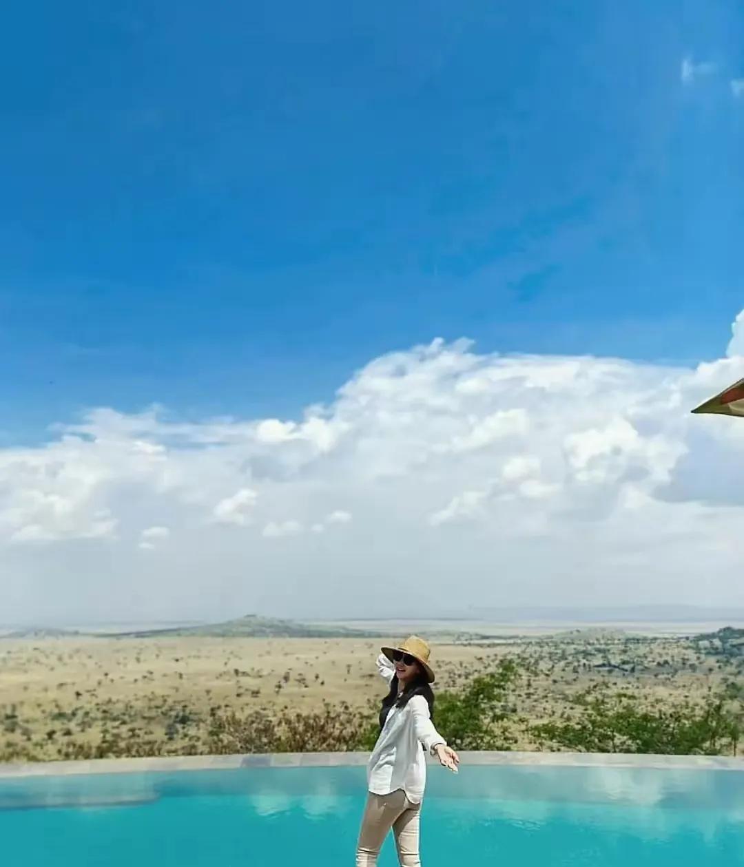 45岁的陈好在大草原旅游时拍摄了一组令人惊艳的照片,她身着一件宽松的亚麻衬衫,轻