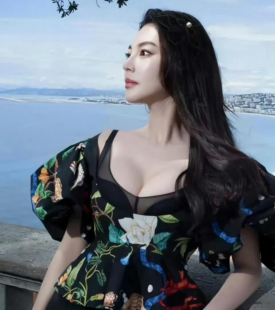 张雨绮穿印花装,纱边勾勒傲人曲线,长发配海景,眼神勾人,皮肤像会发光,这性感直接把海风都撩“失控”!