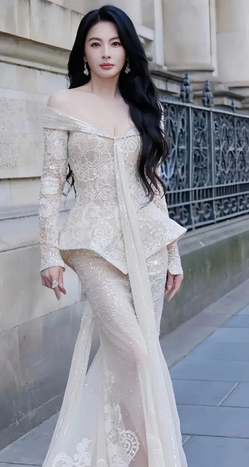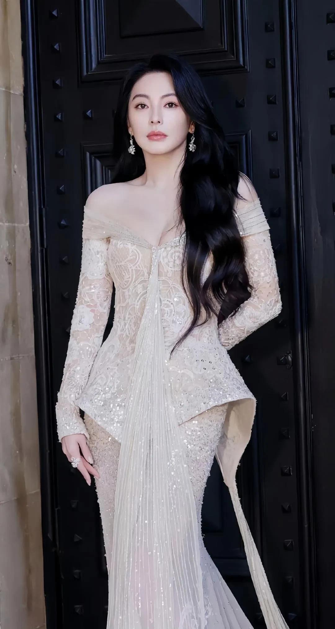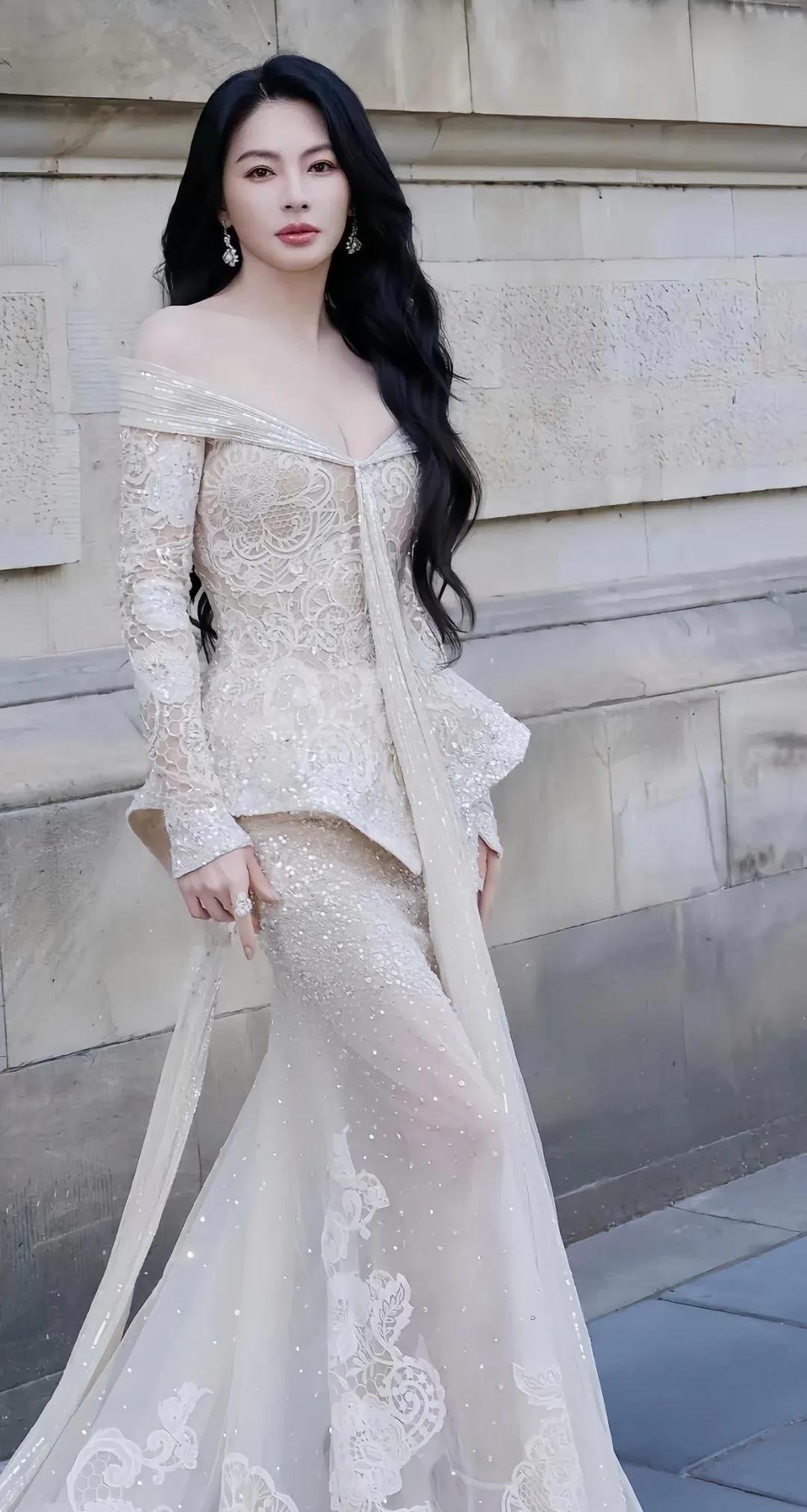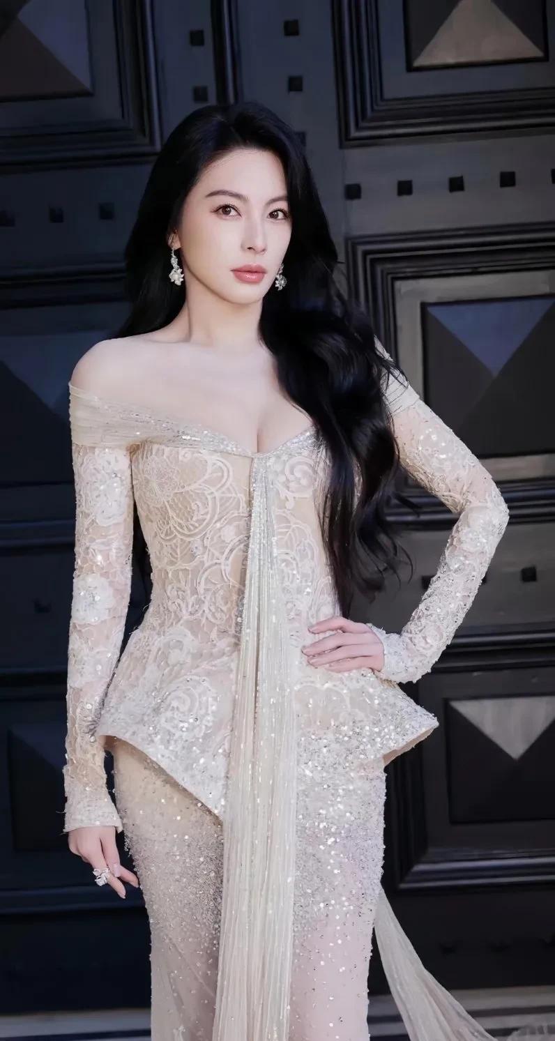 张雨绮这一身绝了!露肩礼裙勾勒傲人曲线,皮肤白到发光,眼神自带媚态,随便一站都性