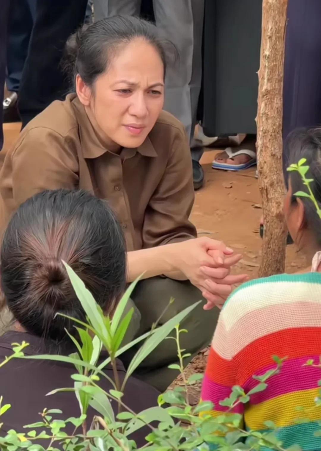 洪森夫人到柬埔寨边境慰问难民,洪玛奈夫人到边境慰问难民,着装和方式不一样,儿媳妇