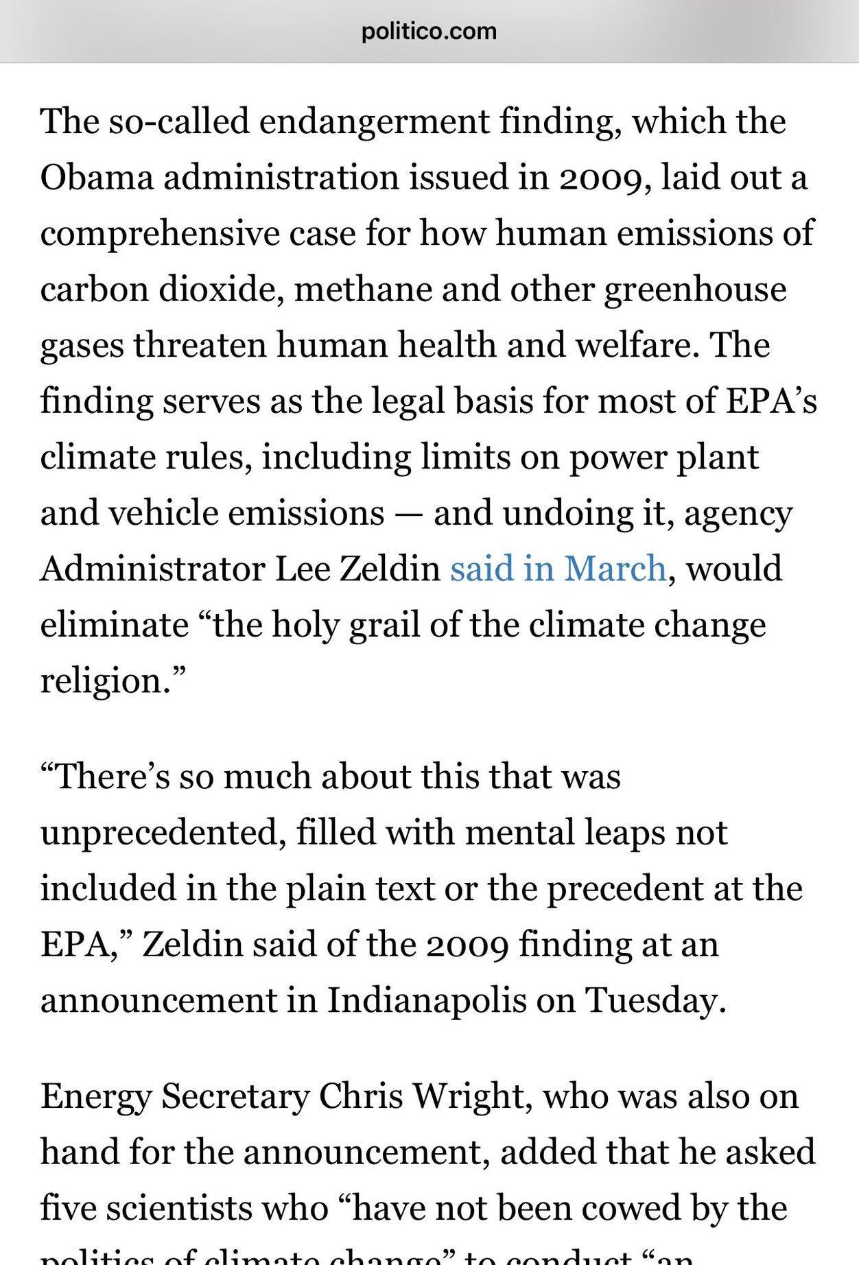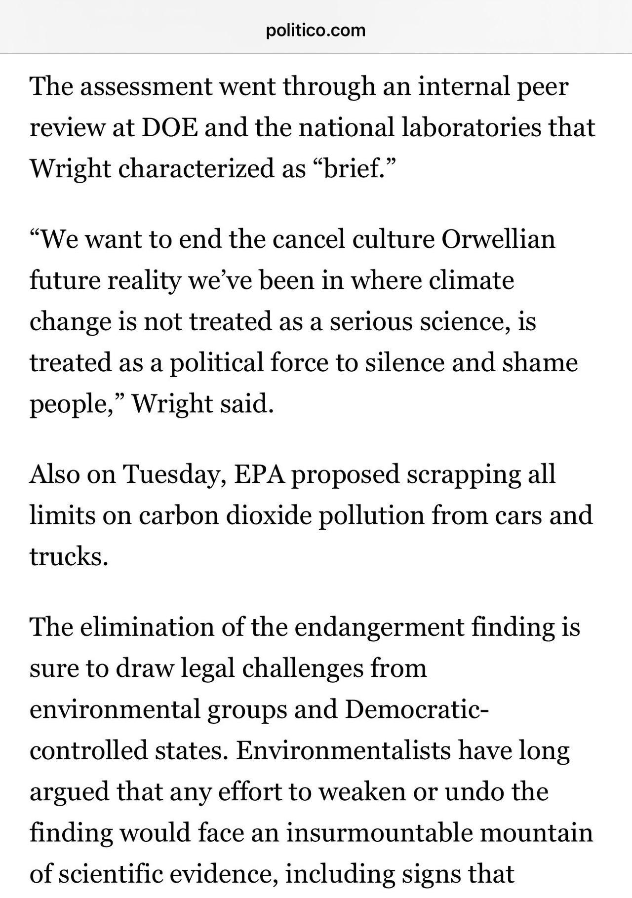 美国环保署EPA,能源部DOE正式宣布温室气体对人类无害,将取消对温室气体排放的所有限制。