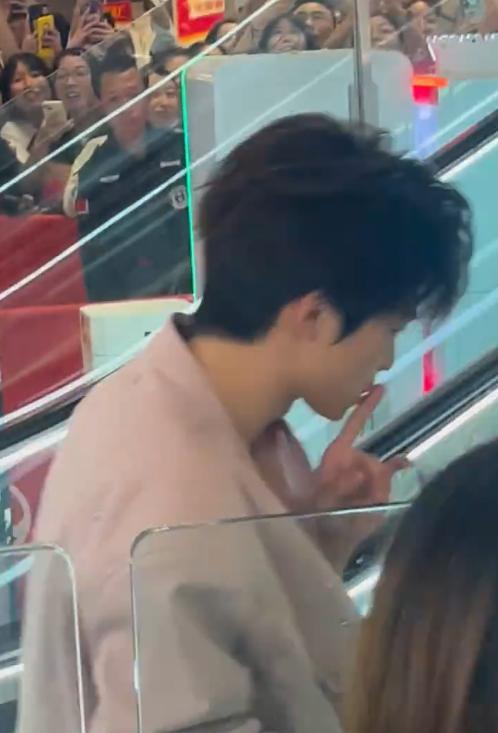 梓渝听见粉丝叫“梓渝老婆”时的反应太可爱了,脸微微一红,连忙用手给粉丝做嘘声的动作。
