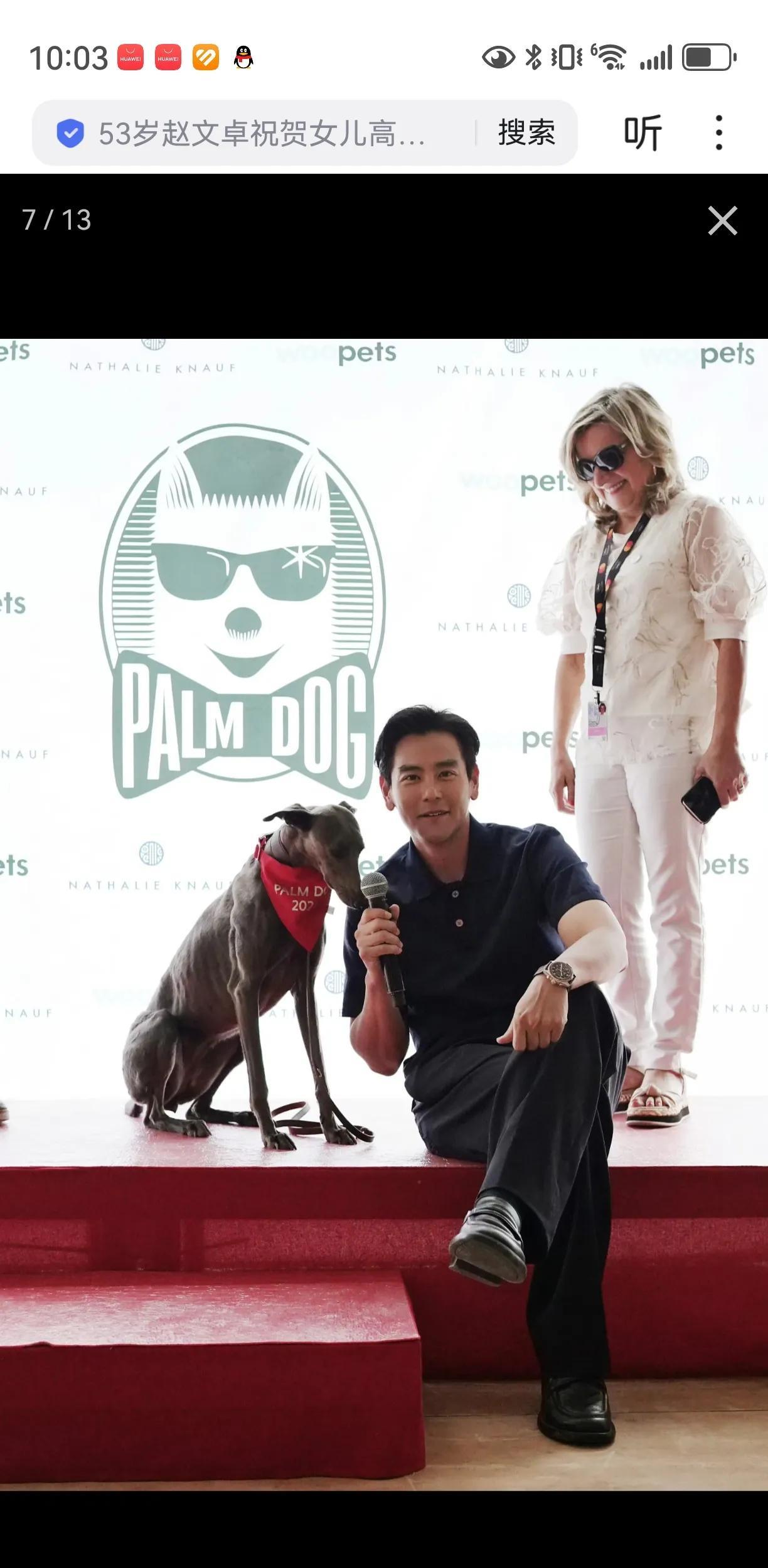 2024年第77届戛纳国际电影节上,《狗阵》的主演彭于晏和片中细狗的饰演者,品种