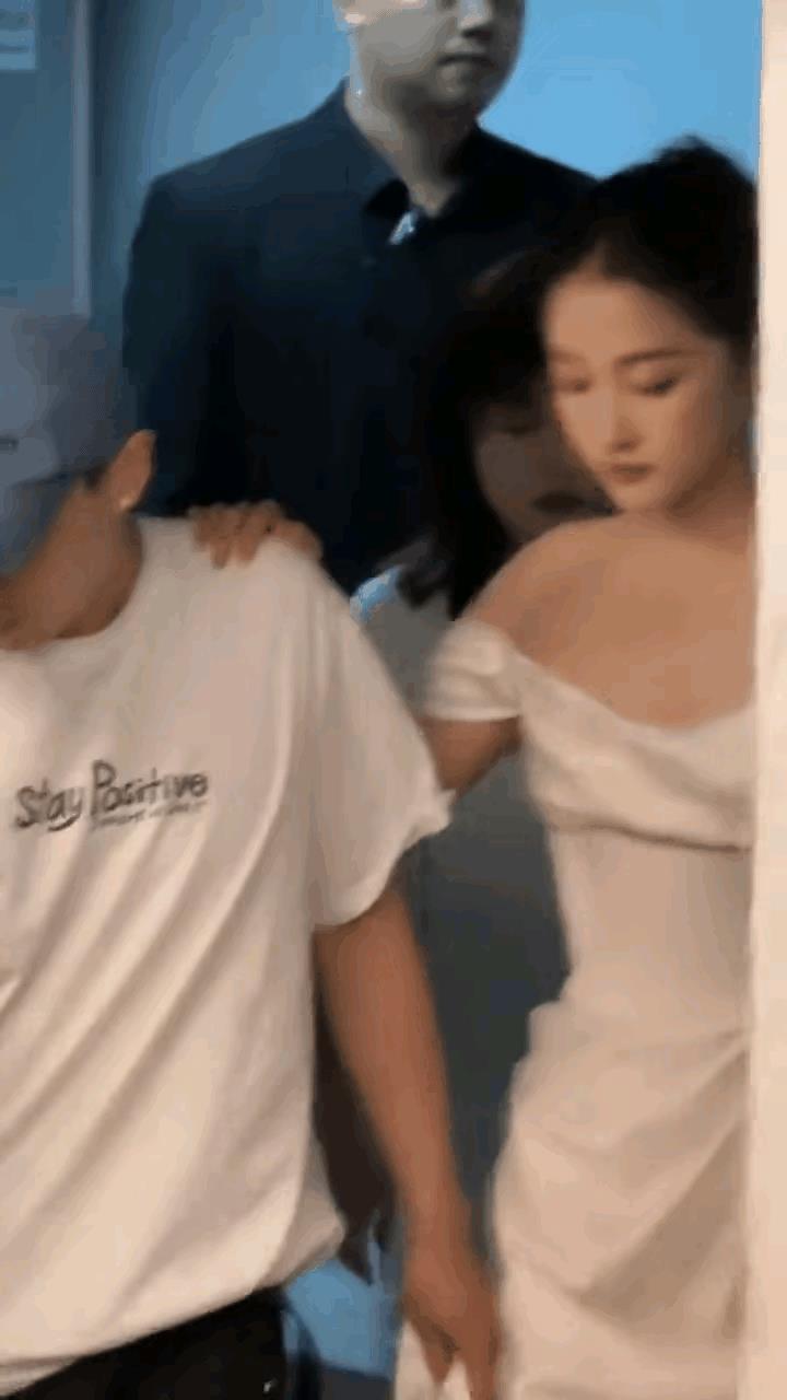 关晓彤瘦了,巴掌大的小脸更显瘦削,大长腿依然吸睛,白色落肩礼服很适合她,助理拉着