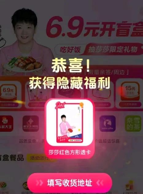 跟着莎莎拼好饭。 莎莎真的是看见好吃的眼睛就发光了,知道这孩子喜欢美食,这不就被美团请来了,今天拼好饭有活动,刚刚6.9那个开盲盒,下了两单,开出来一个隐藏福利,一份鱼香肉丝盖饭,一份塔斯汀的汉堡套餐,其实主要是想要莎莎的周边,看到还有幸运的人开出来莎莎的亲签球拍了,真幸福。 美团的这个宣传片拍的挺好,莎莎这是真吃呢,大口吃饭,看着就很香啊,莎莎的眼睛真大。有吃的有喝的,看莎莎多满足,以后就多代言些吃的喝的,虽然莎莎平时吃饭慢,但是这吃的时候一大口就放进嘴里了,就连吃饭都这么萌。 这次是粉色小莎,莎莎穿这件粉色衣服也好看,真的就像龙队说的“乖萌萌”。莎莎平时训练和比赛都很忙,她还挤出时间来拍代言,打球的莎莎也很霸气哦。