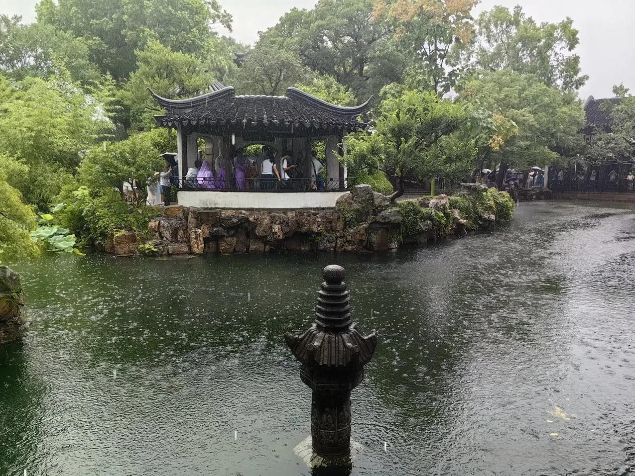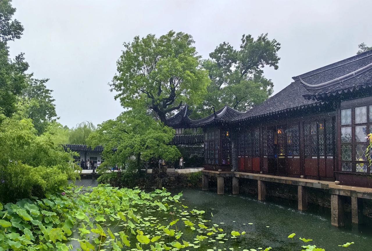 从上海进入苏州界面,明显感觉高楼大厦多了,感觉更有活力,是片面了还是错觉。 苏州整体给人太强了,高铁站真多,虽然没有机场,那是为了上海的机场。 苏州无论教育和文化都是响当当,奥林匹克中心,苏州工业园区,苏州大学令人称赞。 苏州的经济更厉害,昆山当年上海不要,结果现在经济总量超过了很多省会城市。 日出江花红胜火,春来江水绿如蓝。 能不忆江南?苏州可以说是上海的后花园,特别苏州园林值得游览观赏,更可以停下来去感受,品味人生。 好不容易来到了苏州园林,但很巧下起了大雨,受台风影响无能为力,好在景区没有关门,虽然影响了观感,但是没有影响感观,历史底蕴足矣。 只能说苏州人民太有福了,经常来逛逛园林,随时感受着诗情画意的江南。 #城市观察员#