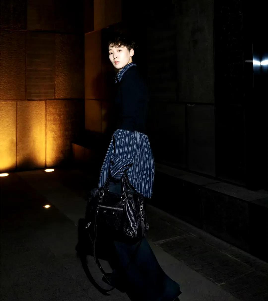 王曼昱今年五月末参加巴黎世家北京三里屯旗舰店活动时,受邀为品牌演绎早秋成衣、手袋