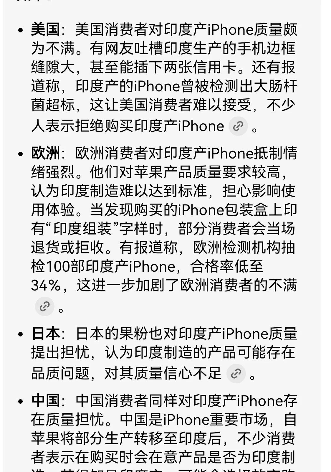 美国人用的是最差的iPhone。 据新加坡联合早报昨天(7月29日)报道:“美国科技巨头苹果将更多iPhone手机组装线转移到印度之后,印度已超越中国,成为美国智能手机市场的最大来源国。” 这类报道,粗一看,好像印度 iPhone的产量超中国了,但不能只看叙事,需要提取关键词,再联系现状,重新叙事。 关键词:一“组装”,二“转移”,三“输美”。 一、这说明印度的生产线只是组装线,零配件还得是中国造, 二、这组装生产线也是从中国采购的,保不齐管理人员,技术人员也是中国的, 三、印度只是在输美 iPhone成为最大国,其它地方未必。 联系其它信息,郭台铭关闭了部分印度生产线,重回河北,中国 iPhone.产能占苹果总销量80%。 由此,我们就可以重新叙事了: 为响应特朗普号召,苹果想将生产线转移回美国,但由于关税原因,它只能往印度转移,又由于除美国以外的市场对印度产iPhone不太接受,所以印度产iPhone成了美国专供。
