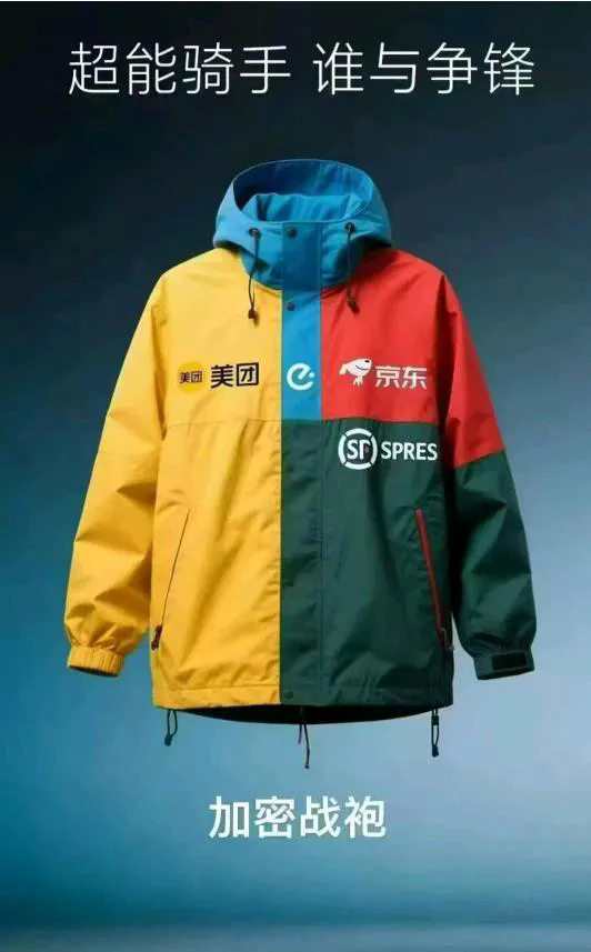 看到个外卖小哥 戴饿了么的头盔, 穿美团的衣服, 用京东的外卖箱, 看来我要穿上加密战袍 不然震不住他们!