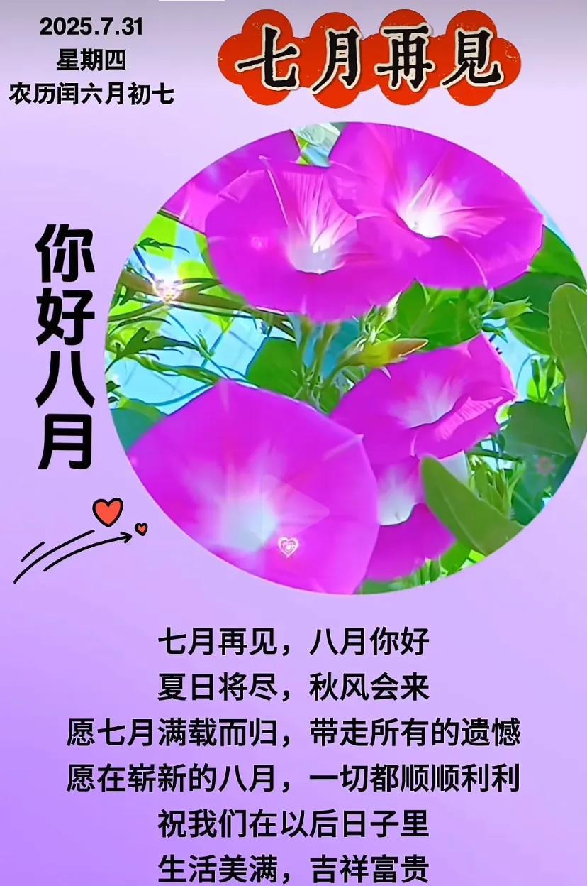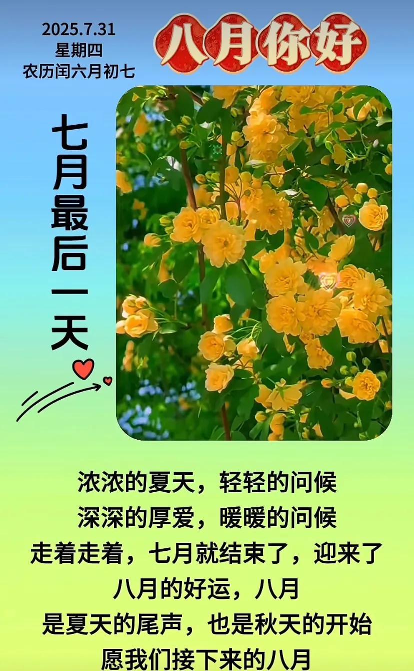 2025、7.31星期四农历六月初七 天气炎热,注意防暑、照顾好自己 #仲夏