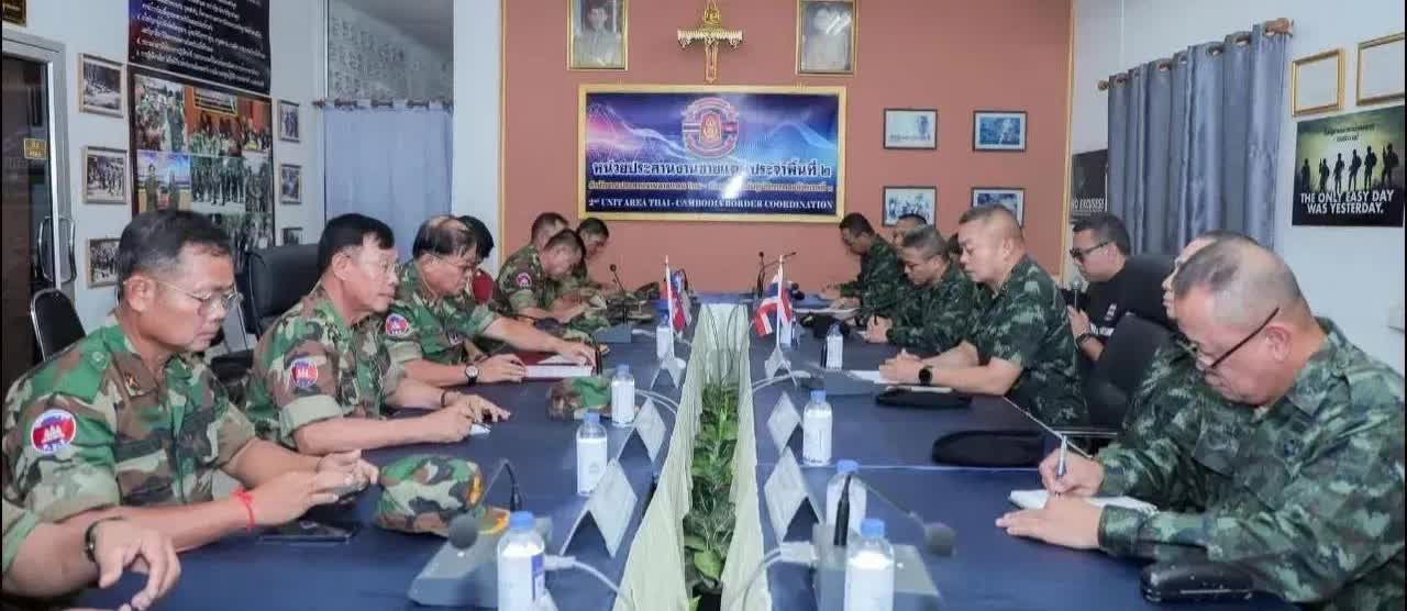 真的很没诚意,泰国好歹在桌面摆几盘果切,或者像洪森对待他们国王西哈莫尼一样,摆几个榴莲在上面。下图泰柬停火协议一签,本辛代表泰国第二军区与柬埔寨军方谈判停火细节。双方就是到现场喝了瓶矿泉水,然后回去接着打,真是奇葩。