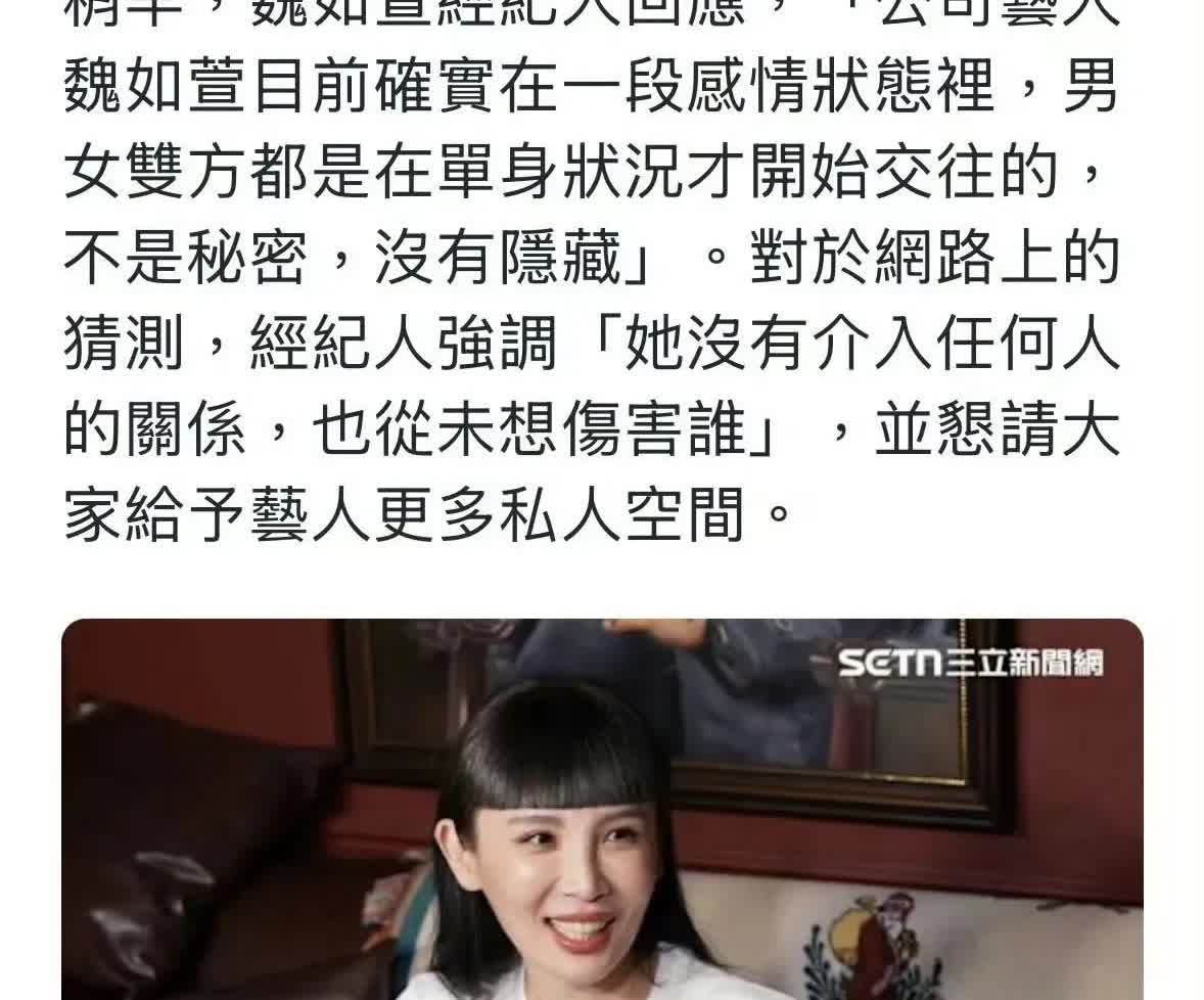 魏如萱被设局了! 42岁的魏如萱最近找了一个21岁的男大学生谈恋爱,但这个男大学生还有一个女朋友叫若盈,在台湾是一个小网红,若盈先是发文说魏如萱当小三插足她和男友的感情,在魏如萱慌里慌张不知道怎么回应时,她又说自己弄错了。 魏如萱看到若盈说弄错后,她松了一口气,对外承认了她和男大学生的恋情,没想到若盈在她承认恋情后,立刻发文说魏如萱就是插足了他们的恋情,因为她和男友没有正式分手,俩人只是吵架在冷静期。 这一系列操作下来,魏如萱直接被打上了小三的标签,最关键的就是魏如萱承认了她和这个男生在谈恋爱,而这个结果则是若盈精心设局得来的,先否认让魏如萱放松警惕,然后再来个大的,直接打的魏如萱措手不及。 不过这件事里,最有问题的人不应该是那个男生吗?男生一边和自己同龄的女友没有分手,保持恋爱关系,一边又和魏如萱谈恋爱,这很有可能是两头骗啊。