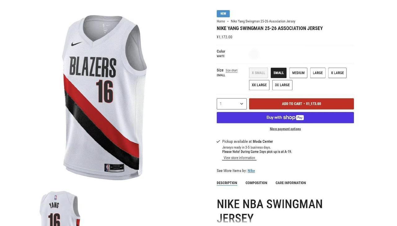 杨翰森球衣正式开售!开拓者新赛季的改版球衣正式上线了,杨翰森的联盟版售价1173