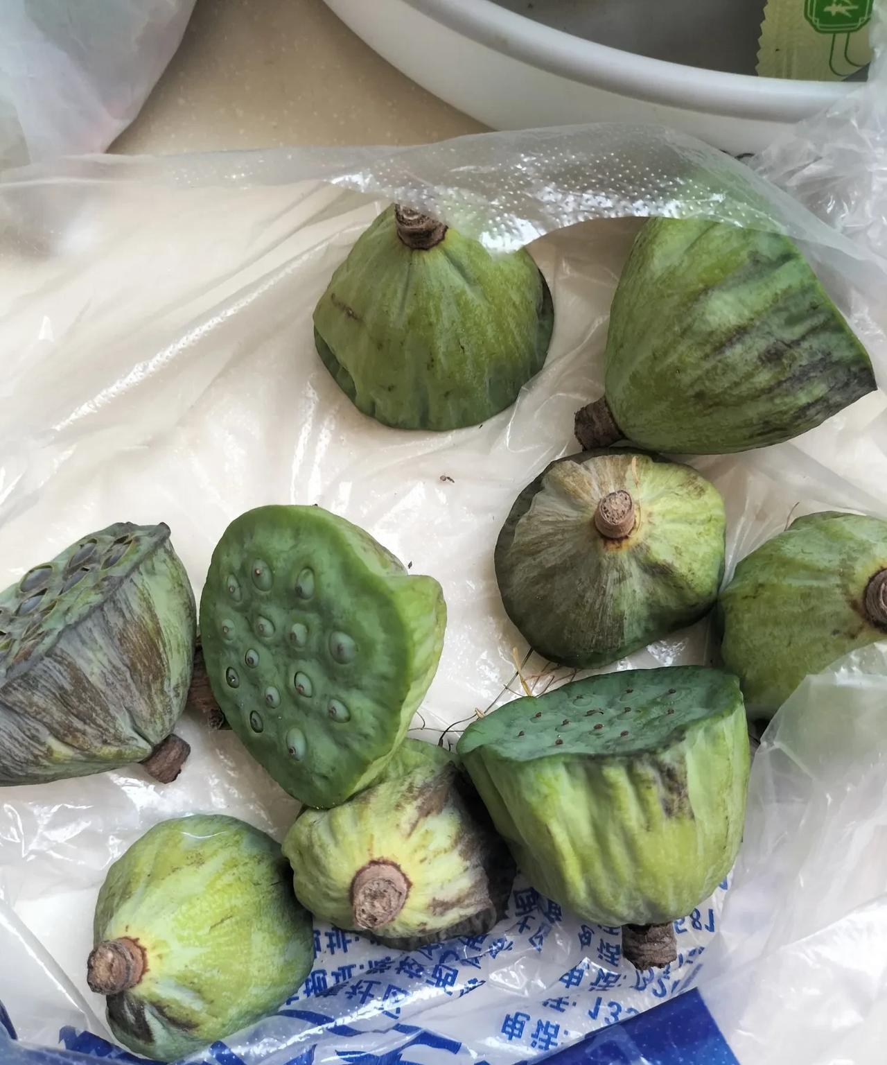 荷花的种子,为什么称为莲子? 诗经里有,莲是荷的总称。 说文解字说,荷是叶,莲是子。 所以荷花的种子叫莲子。 荷花谢了,莲蓬现,莲蓬里面藏莲子。 剥开莲蓬取莲子,莲子里面有莲心。 莲心很苦。 小外甥女给我吃,问我苦吗? 我说,苦!可是好吃! 小外甥女,哈哈笑。 我们小时候,苦的东西吃的多了,不觉得苦。 她从小吃甜的多,这莲心的苦,是真苦。