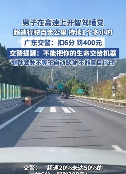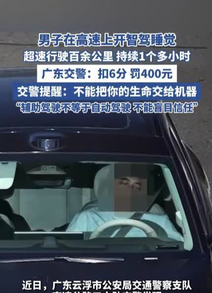 “还敢用智驾撒手不管?”近日,广东云浮,一男子在高速上开车睡觉,连续一个多小时用“智驾”开车,超速行驶了100多公里,被交警发现后处以扣6分罚款400元的处罚,网友:谁和他一起在路上得增加多少危险几率。 在广东云浮的高速公路上,有个司机开车时太困了,就没忍住打了个盹,但他没停车休息,而是用了车上的智能辅助驾驶来代替自己开车。结果,这智能系统帮他开了100多公里,速度还超了限,开了一个多小时才被交警发现给拦了下来。 那天,这个司机开长途车开累了,他没去服务区歇会儿,而是开了智能辅助驾驶,然后自己就放心大胆地睡着了。车子就这么自己开了个多小时,不仅一直超速,还在车来车往的高速上穿梭,真是惊心动魄。要不是超速被监控拍到了,他可能还不知道自己已经“梦游”了这么远呢。 虽然智能驾驶现在越来越常见了,但它毕竟还是个帮手,不能啥路况都能搞定。这个司机的做法,不光是拿自己的生命开玩笑,也让其他开车的人跟着担惊受怕。高速路上,那可是分秒必争的地方,方向盘一松手,说不定啥时候就出事儿了。很多网友看了新闻都很生气,说:“他自己倒是睡得香,可别人说不定就躲不过去了!”“这哪是开车啊,简直就是拿命在赌!” 后来,交警按法律给了那男子处罚,扣了6分,还罚了400块钱。还好这次“无人驾驶”没出大事,但教训已经够深刻了。