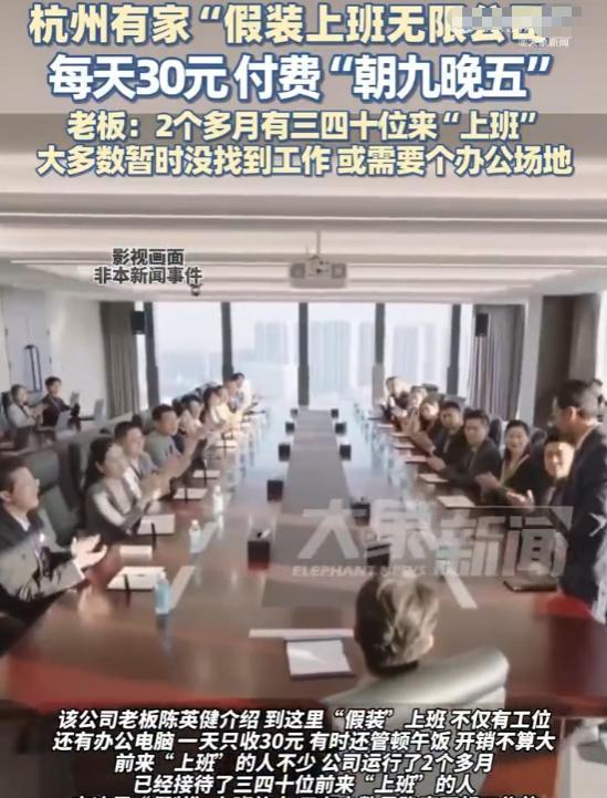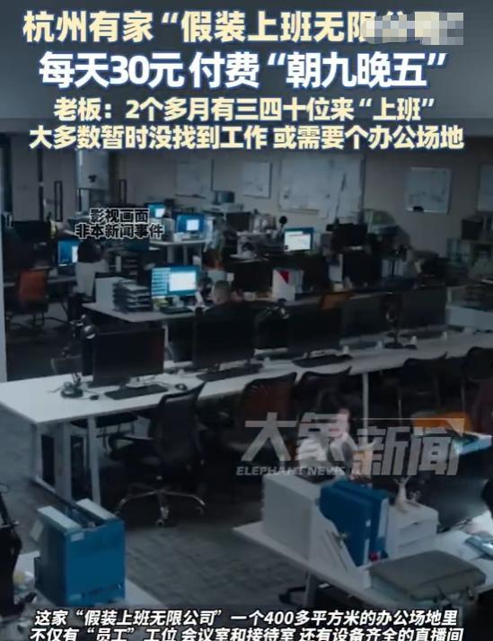 “自费上班?”杭州男子为赚快钱,竟开了一家“假装上班有限公司”。公司给提供“朝九晚五”的付费上班服务,每天收费30元。老板说,生意非常火爆,大多都是为了应付家里不想上班的年轻人,出手很阔绰,拍完照片就走。 7月29日报道,杭州市场上最近新兴起了一个非常冷门的公司。这家公司叫做“假装上班有限公司”,顾名思义就是“假装上班”。说公司比较难以理解,但是你可以把他当成和咖啡厅、网吧之类的娱乐机构就行。这个“公司”的受众群体就是那些不得不假装上班的人。 比如一个大学生刚毕业,想到处玩一玩,转一转,但是家里一直催着让上班;或者是一个常年混迹职场的成年人,突然被公司裁了,还没有找到下一个新公司,又害怕被媳妇唠叨,在家什么事都不敢;再或者是一个大学毕业的孩子,他想考研,可家里非要让工作。 类似于这种“不得不”上班的人,就可以每天去“假装上班公司”打卡。 “公司”不提供任何工资,也没有任何福利待遇。反倒需要收取打工人每天30元的费用。只要打工人愿意,那么就和网吧包时一样,可以一整天都在“公司”呆着,你可以在公司干自己想干的事情,比如看书,刷抖音,怎样都可以。和其他公司一样,每天早上9:00点上班,下午6点下班。 当然也有只是为了暂时糊弄家里的人,那么就可以来这里拍照打卡,或者给家人发视频。老板说他曾经遇到过一个年轻人,就在网上看到他们的公司,嫌家里催的烦,来拍张照片,扔下50元就走了。 老板说自己开这个公司之前,很多朋友都嘲笑没有市场,跟闹着玩一样。直到“公司”开了起来,他们都非常惊讶,居然有这么多人需要演戏。 老板大略一算2个多月以来,有三、四十位来“上班”的,每天他甚至都不用来“公司”,坐在家里就能让“员工”给他转钱。事情传到网上之后,网友们也觉得新奇。纷纷赞叹不愧是大城市,果然会玩。也有人说,有空调,不用风吹日晒,花30元就能呆一天,是非常划算。 可是也有不少网友表示不能理解,这不就是在助长一些好吃懒做的歪风邪气吗?原本没有这个“公司”之前,家里虽然唠叨,但至少他们会出去打工,但是自从有了这个“公司”之后,家里人还要在给打工人生活费,来进行付费上班。 退一万步说,真的去找份工作干干会怎么样呢?不管每月赚的是多是少,总归是有个事情干,总比老大不小在家里啃老来的强吧。不过也有人觉得,这个“公司”就是成年人的“网吧”,能够在这里短暂的放松身心,其实和咖啡厅没有什么区别,不应该大题小做。 对此,你怎么看呢?欢迎在下方评论~