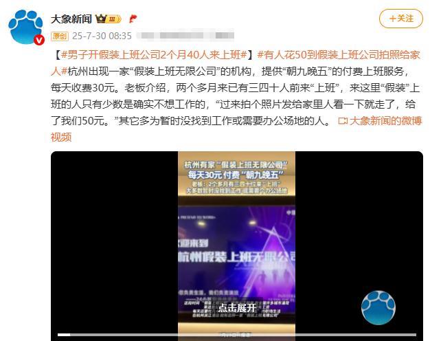 “自费上班?”杭州男子为赚快钱,竟开了一家“假装上班有限公司”。公司给提供“朝九