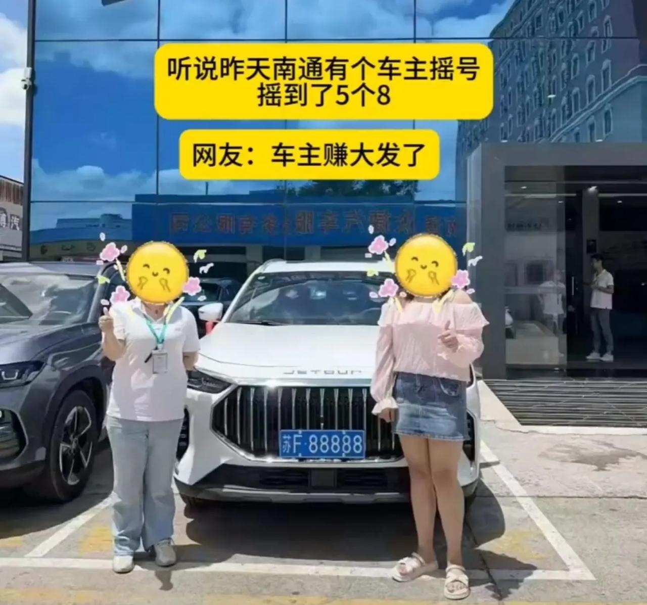 车主,赢麻了。 光靠摇号机居然直接硬摇出五个八的车牌。 而且还是苏州的蓝牌,这运