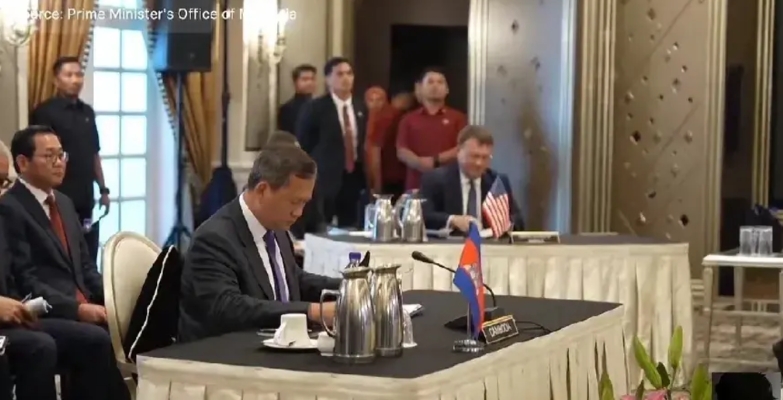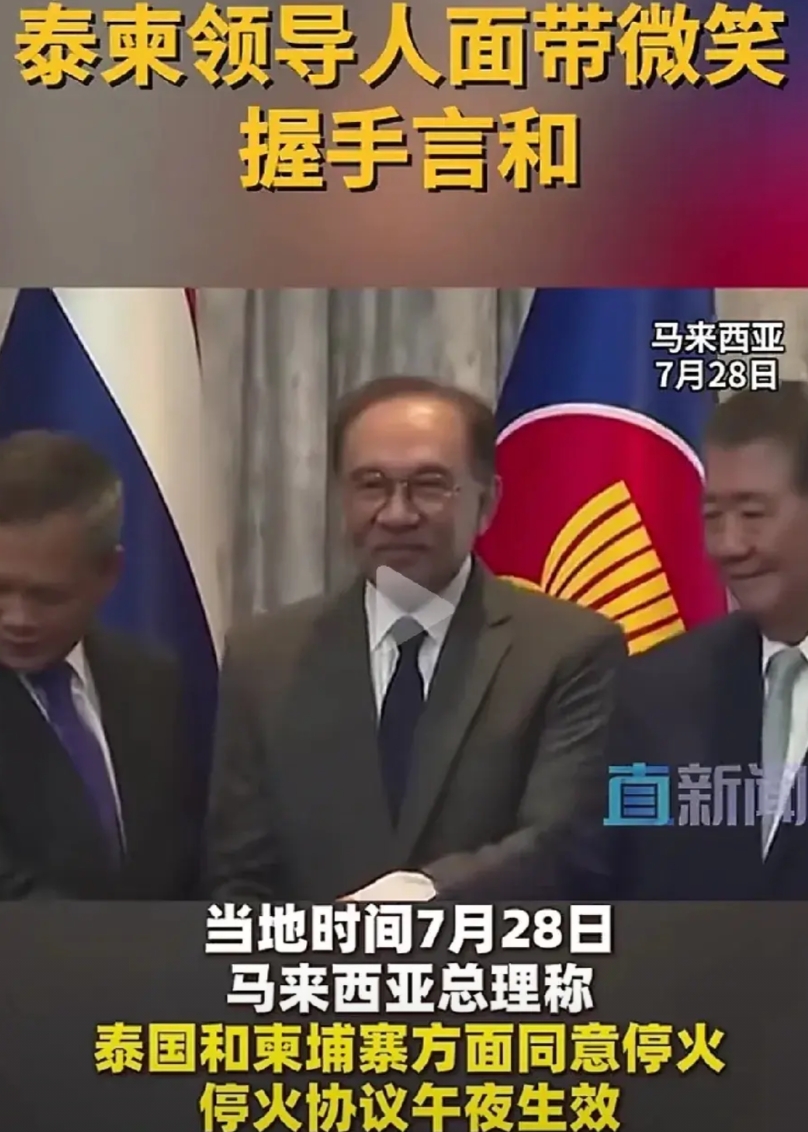 不打了!这场调解的会谈很有趣呢?柬埔寨和泰国握手言和了,但谈判的地点是在马来西亚的吉隆坡,主持这场会谈的就是马来西亚总理,但会场里除了马来西亚及交战双方(柬泰)以外,还有来自中美的代表,他们分别坐在马来西亚总理的两侧,美方代表位于柬埔寨一侧,而中方代表则是坐在泰国一边。