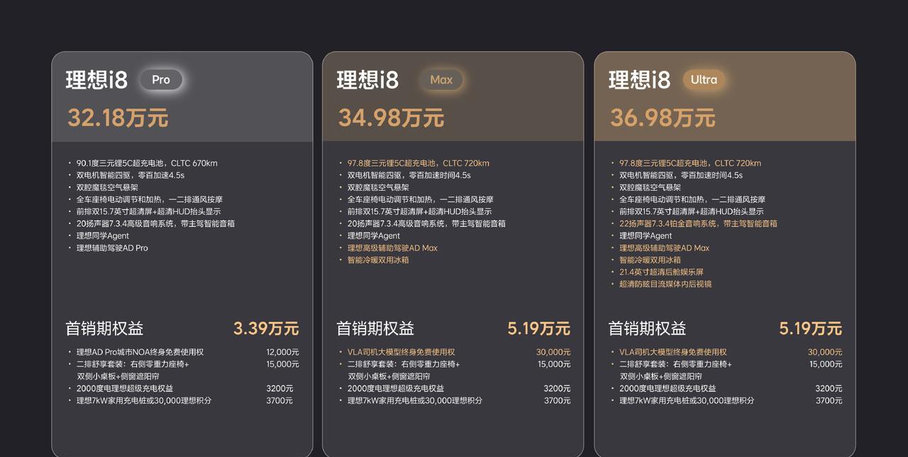 李想昨天给「理想i8」输入了一个「奇怪的定义」:理想i8=轿车+越野车+MPV! 对,也很有必要! 「全面」,这是i8归根结底在传递的信息点,其实这也是一种「锚定」,之前在锚定「豪车」,现在开始锚定「属性」。 是什么创造了这样的锚定需求呢?设计! 单论造型,ONE、L都是成功的,MEGA虽然一度被「网爆」,但现在无论用户画像还是舆论走向,都已经「向上」。 而i8,保守了! 理想可能太需要i8的正面反馈了,毕竟之后的i6才是更能「走量」的,看看L6在销量中的占比就知道了。 而i6,也长这样! 李想非常希望「围剿」Model Y的阵营,真的是「67Y」! 明天压力给到乐道L90……【来自懂车帝车友圈】