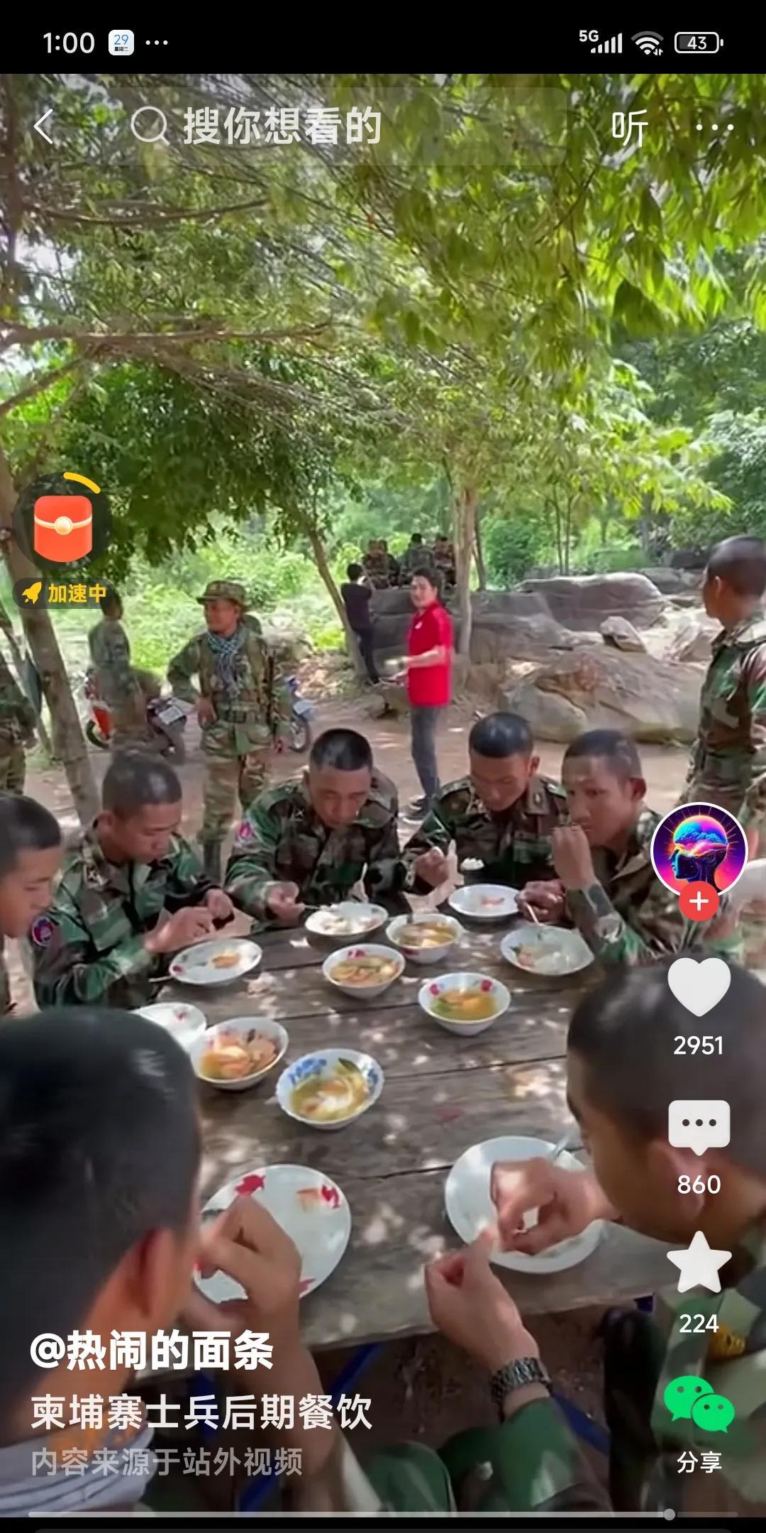 柬埔寨士兵后勤餐饮。网友说:为洪森家族卖命。战时吃这猪食,平时可能吃饱也难得吧?有的人说:已经很不错了,想想当年我们老祖宗们,可没有这么好的伙食,爬雪山过草地,吃草根,想想他们真是太艰苦了,太不容易了!有的人说:洪森家族,中国协调越南帮你挖运河,帮你建中越柬铁路。他一边有邀请美日海军搞军演,没有上桌的实力,还想玩弄世界三大强国美国,日本,中国。这是找死的节奏,这次泰柬战争,中国已经宣布中立了,泰国可不会轻易放过他的。大家说是这样的吗?
