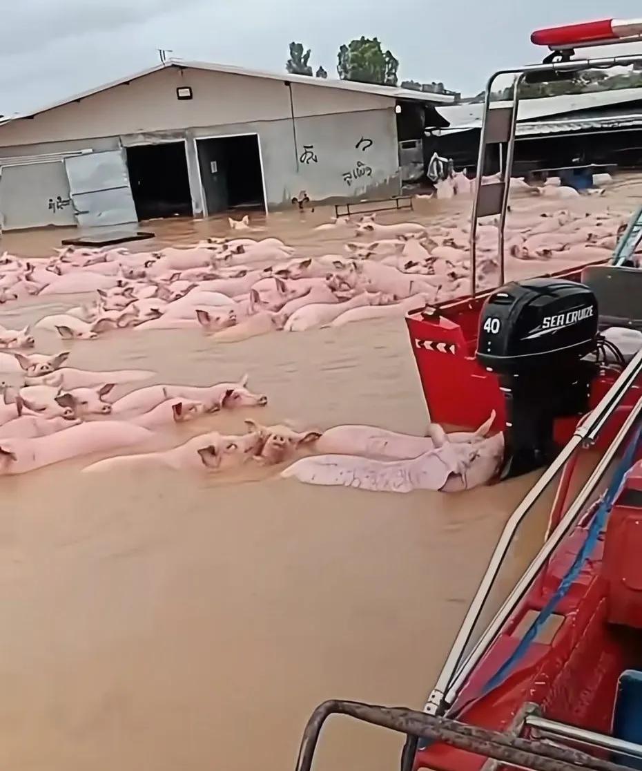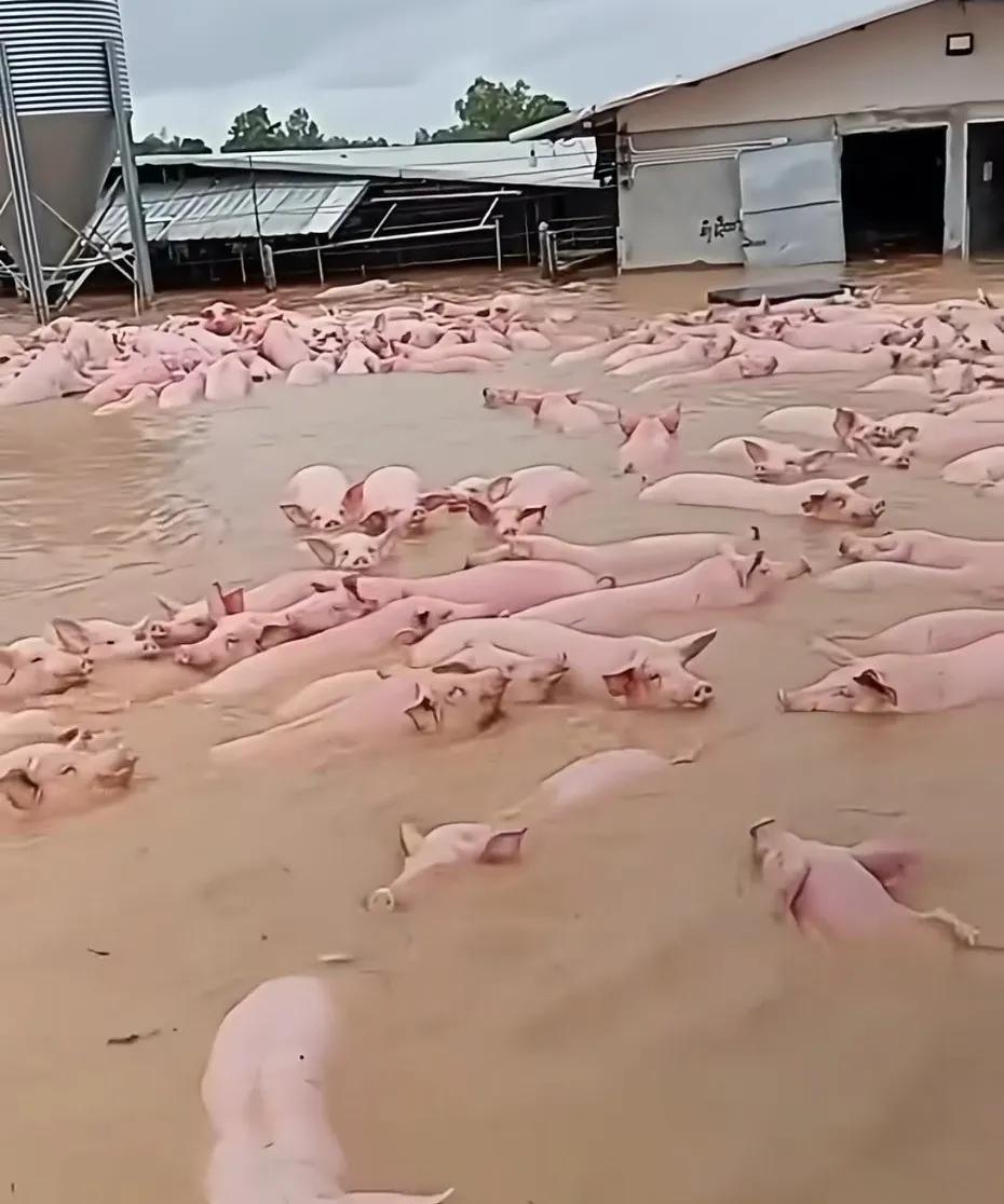 一次暴雨的袭击后,猪猪们都学会游泳了[赞]