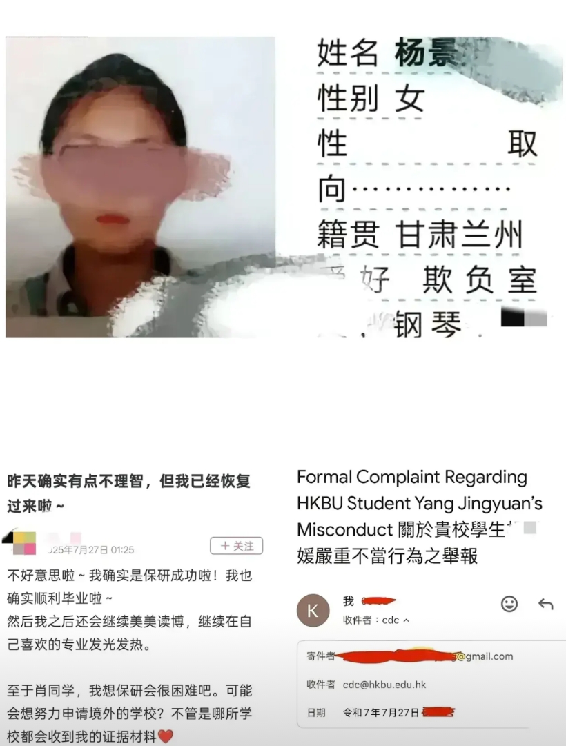 香港浸会大学是乱港分子的大本营,他们最出名的就是新闻学,最喜欢的学生类型就是具有批判精神、勇于反抗权威、善于重构叙事的学生,且诬告者的导师就是香港那边的大学毕业的,她导师的同窗就在浸会大学任职,这个事件很可能就是她的导师精心为她设计的投名状,肖同学只是牺牲品