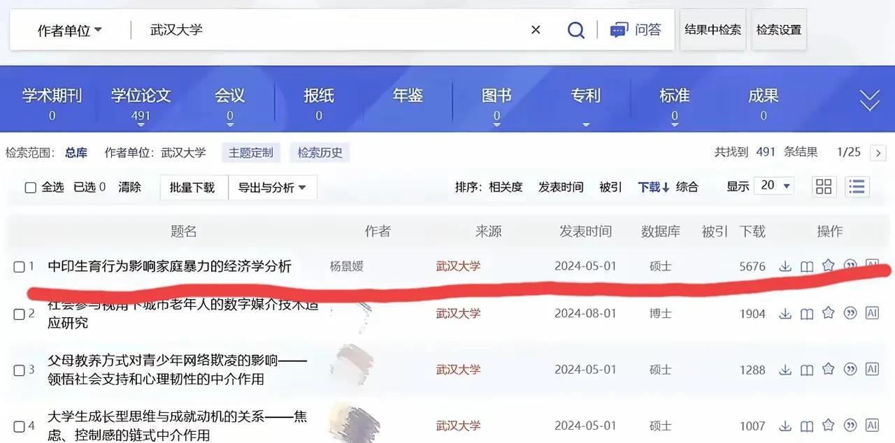 武大杨女士,这会估计要失眠了。他的论文知网下载量第一名。这得多少人去查她的论文。
